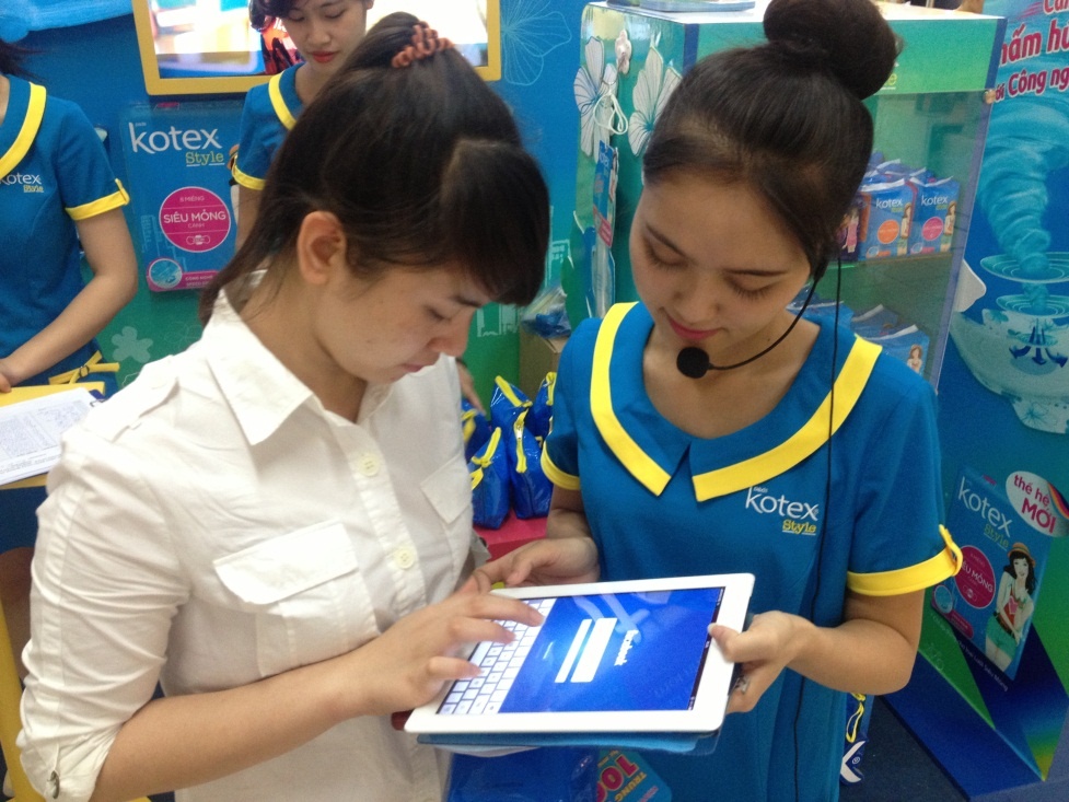 | Các bạn nữ háo hức với chương trình quy mô lớn và túi quà tặng giá trị bao gồm 5 miếng Kotex Style thế hệ mới, 6 miếng Kotex hàng ngày cùng cơ hội tham gia rút thăm trúng thưởng để nhận ngay 3 Ipad mini 16 GB và 300 thỏi son The Bodyshop Lipbalm. |