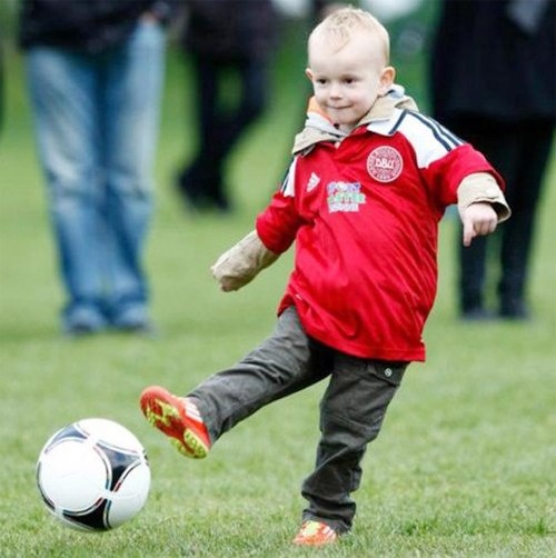 | Cậu nhóc lém lỉnh Jamie của hậu vệ Daniel Agger say mê trái bóng hệt như bố. |