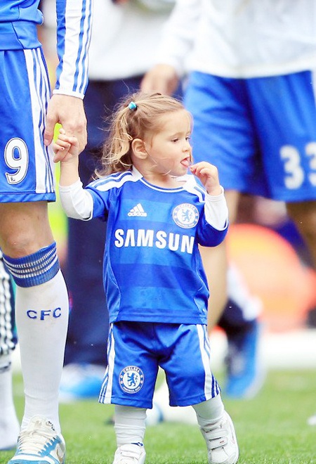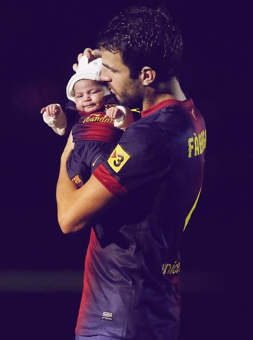 | Ngay từ khi mới sinh, công chúa Lia nhà Fabregas đã được bố cho mặc áo cầu thủ lên sân bóng. |
