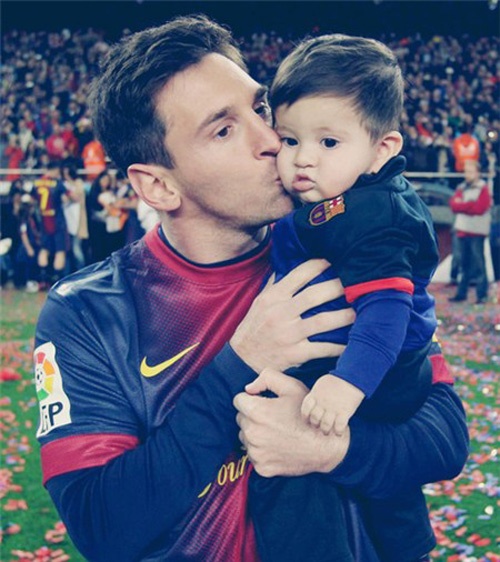 | Cậu ấm Thiago nhà Messi chưa đầy 1 tuổi, gương mặt bầu bĩnh vô cùng đáng yêu. Ngay từ khi còn nhỏ, Thiago đã được bố cho làm quen với sân cỏ. |
