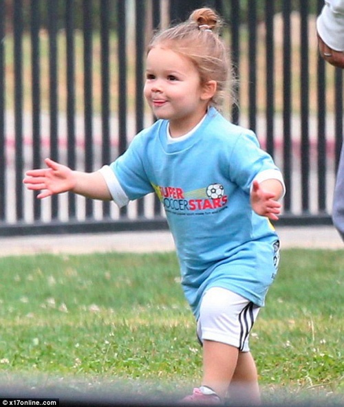 | Cô bé Harper Beckham luôn khiến fan phát sốt với những hình ảnh không thể dễ thương hơn. Dù mới 2 tuổi nhưng Harper tỏ ra rất chuyên nghiệp với trái bóng. |