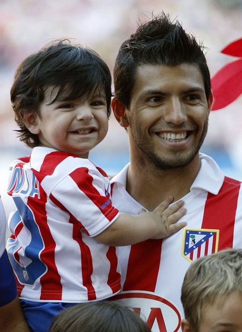 Aguero và cậu con trai bé bỏng Benjamin. |