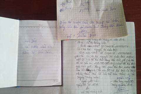 | Bà Đào viết giấy tay để mượn nhiều tiền của người dân trong xóm. |