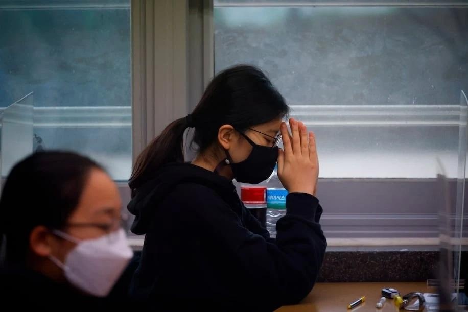 Học sinh Hàn Quốc trong kỳ thi đại học. Ảnh: Yonhap. |