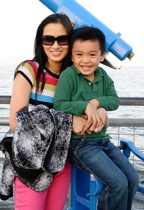 | Vì ba mẹ đã ly hôn nên Kiến Văn sinh sống cùng mẹ tại Mỹ. |