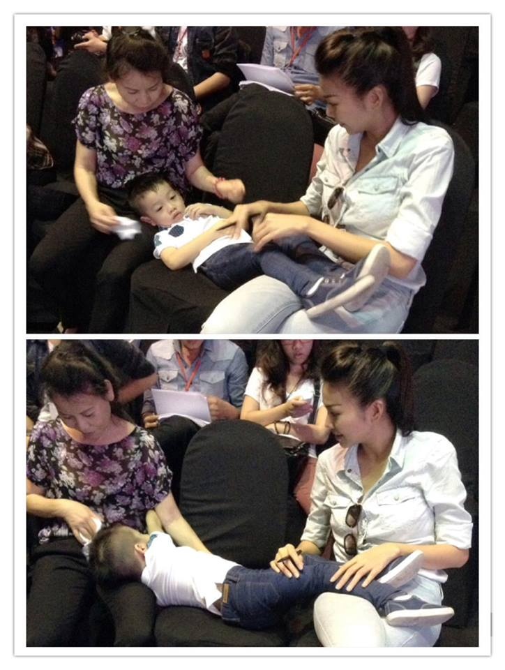 Vài giờ trước, một người bạn của Thanh Hằng chia sẻ trên trang cá nhân hình ảnh cậu nhóc Subeo nũng nịu bên giám khảo Next Top Model 2013 ở phía hậu trường của buổi tổng duyệt. Có vẻ khá quen thân với người đẹp của Mỹ nhân kế, Subeo không ngần ngại làm nũng rồi gác chân lên người của siêu mẫu. Thanh Hằng cũng tỉ mỉ chăm sóc cậu nhóc khi cô bạn thân Hồ Ngọc Hà bận lo chuyện tổng duyệt.