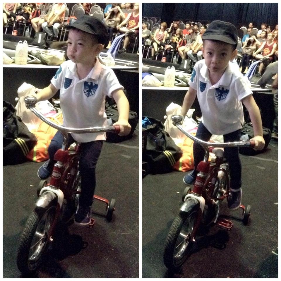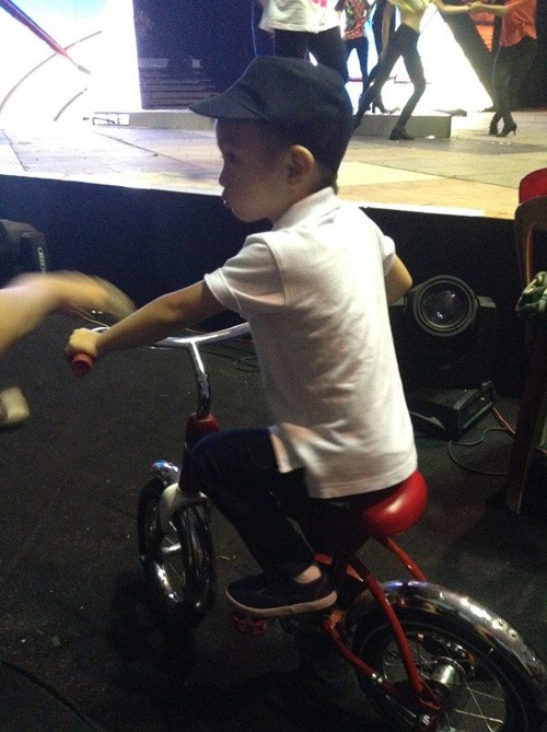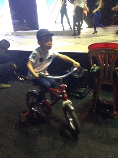 | Vốn tích cách hiếu động, con trai Hà Hồ không thể ngồi yên để theo dõi mẹ mà chọn cách giải trí riêng cho mình là chạy xe đạp quanh hậu trường. |