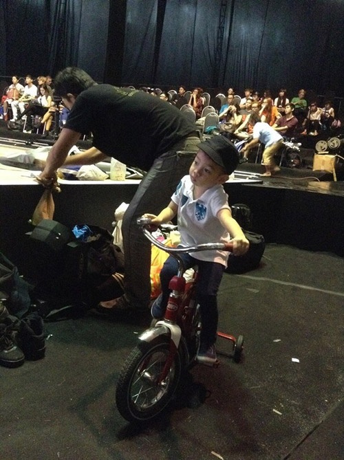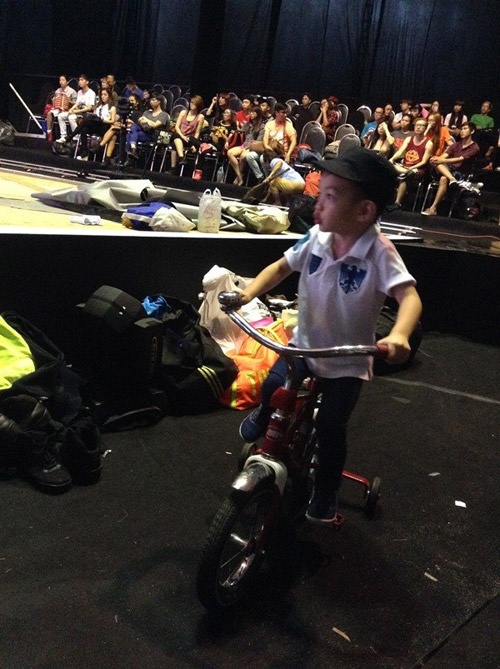 Subeo thoải mái chạy quanh hậu trường sân khấu.