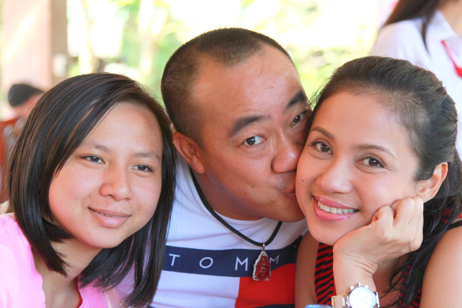 Trước mặt vợ con, Hiếu Hiền không ngượng ngùng mà mấy lần liên tiếp hôn má Việt Trinh thay lời cám ơn.