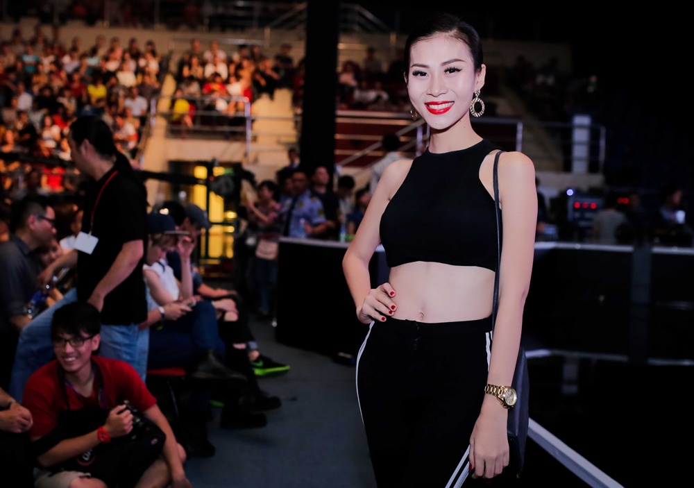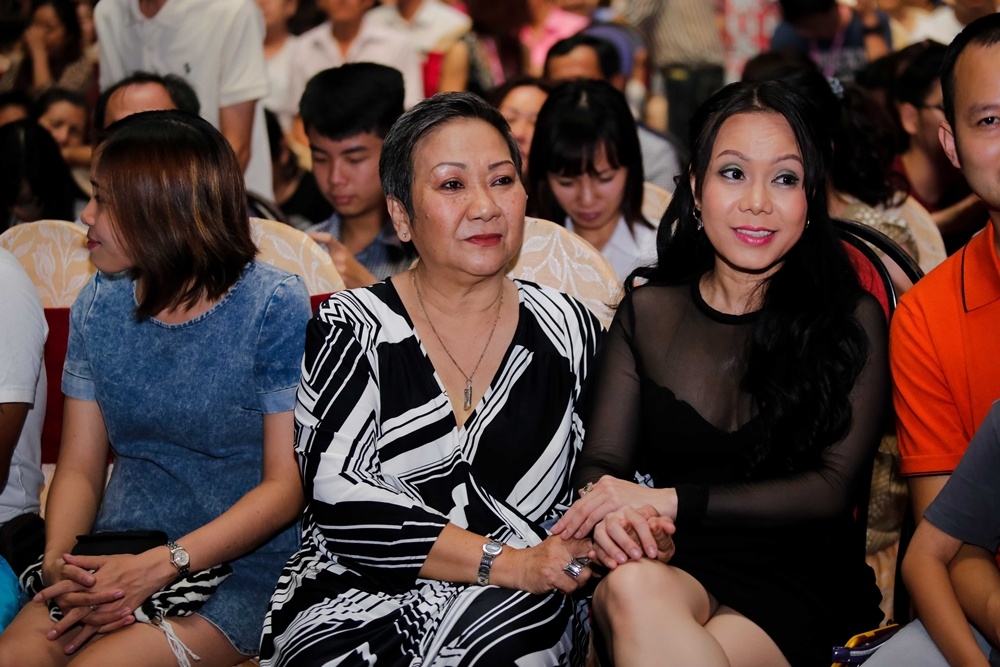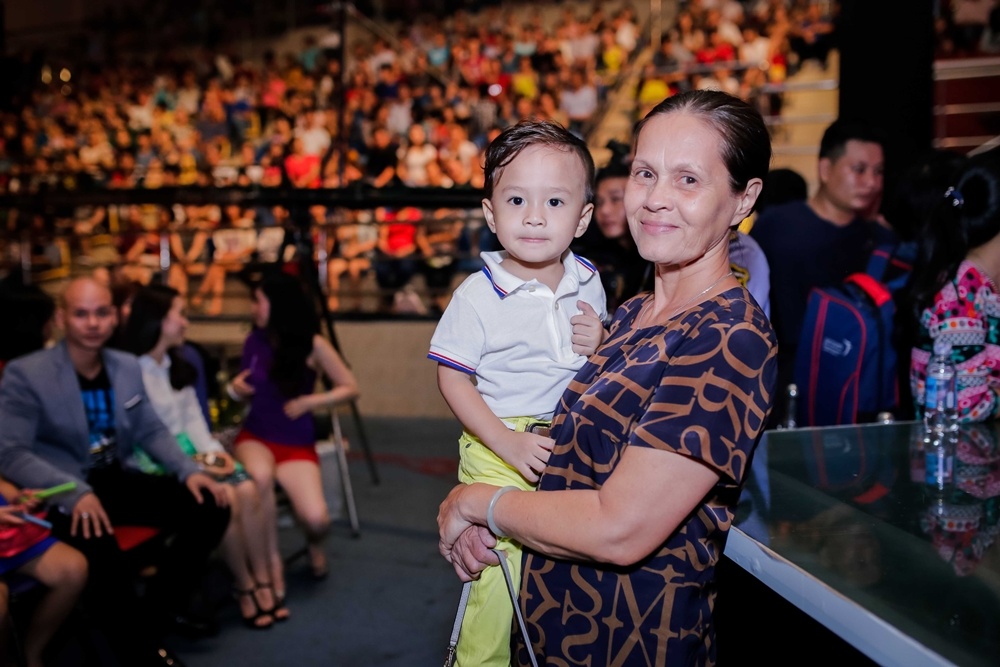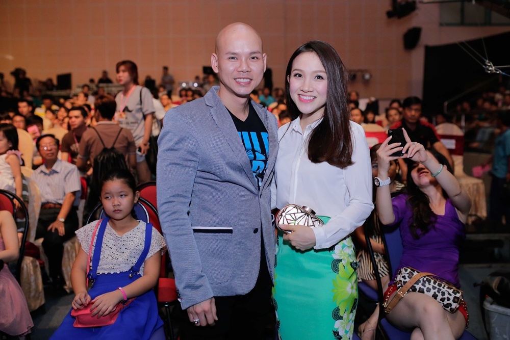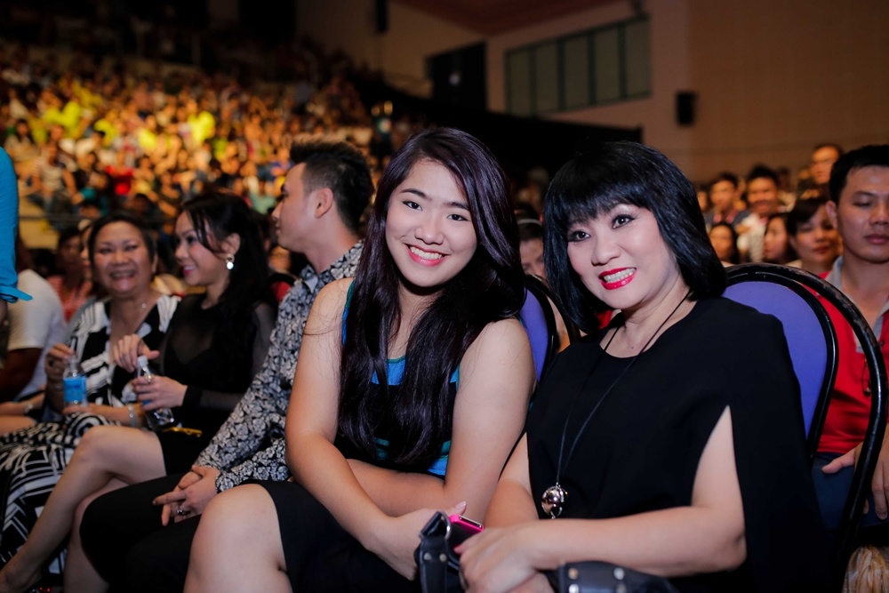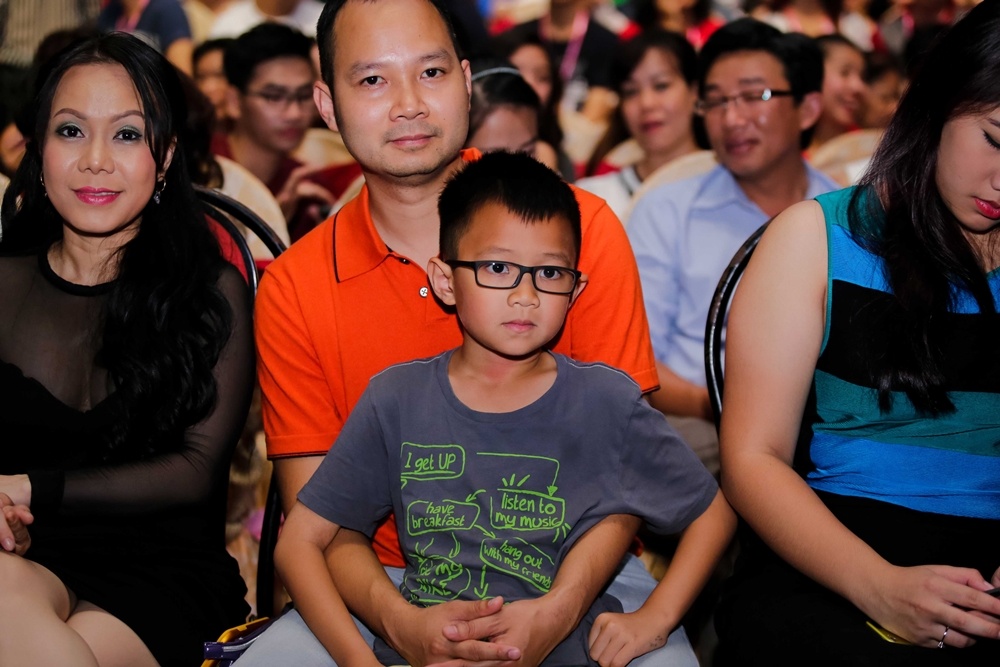 | Ông xã và con trai của Hồng Ngọc chăm chú theo dõi từ hàng ghế khán giả. |