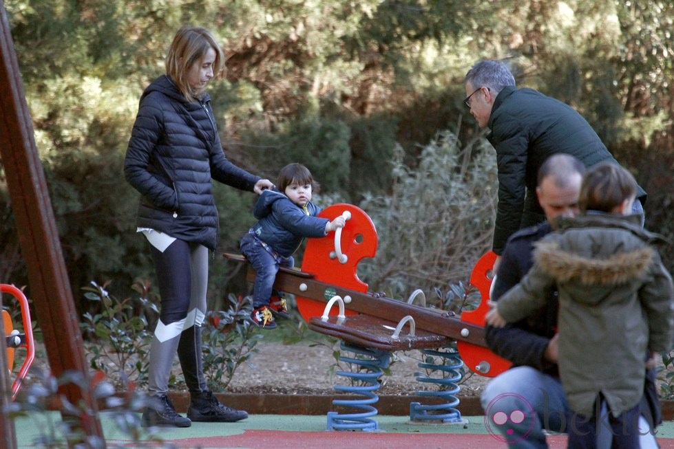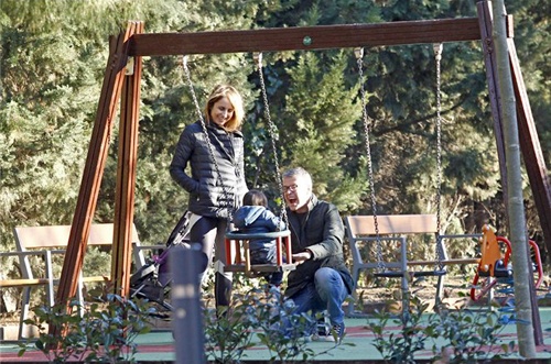 | Đặc biệt cưng chiều đứa cháu nội duy nhất, ông bà Joan và Montserrat vừa cùng chơi bập bênh vừa chọc cho bé Milan cười. Bé Milan, 1 tuổi bụ bẫm, đáng yêu và rất sành điệu ở công viên. |