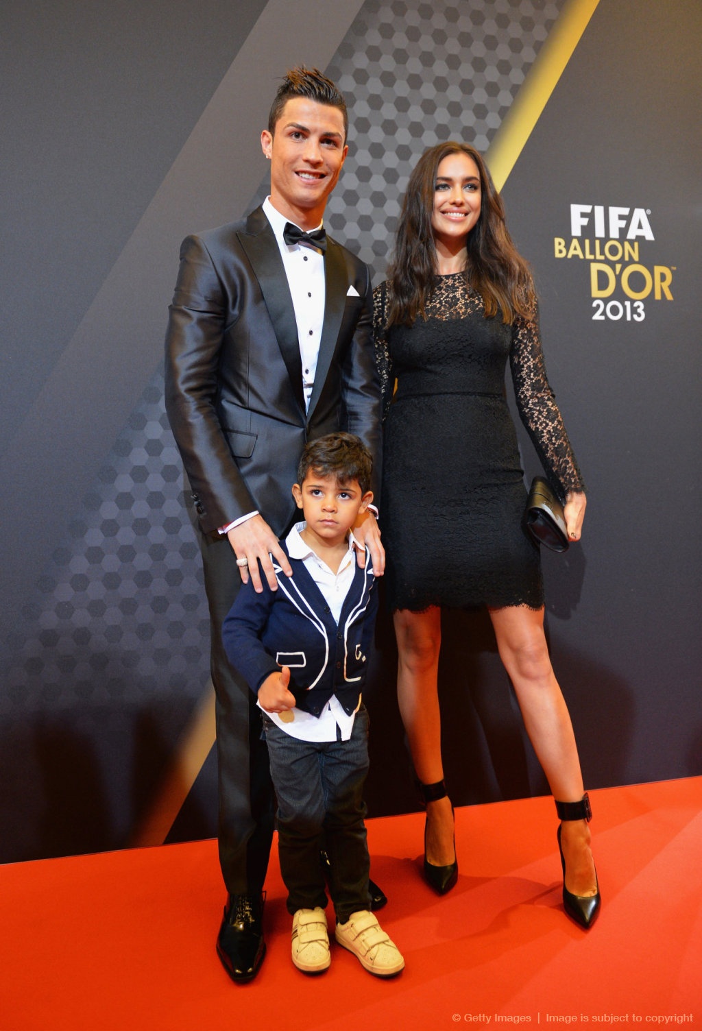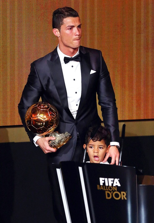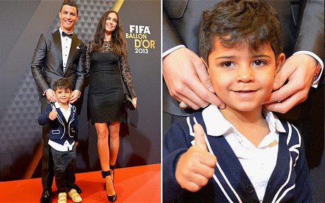 Cristiano Ronaldo Jr, 4 tuổi được bố Ronaldo đưa tới dự lễ trao giải Quả bóng vàng 2013. Ngay từ khi mới xuất hiện, "tiểu Ronaldo" đã nhanh chóng thu hút được ống kính máy quay bởi sự tinh nghịch, dễ thương và phong thái giống hệt Ronaldo.