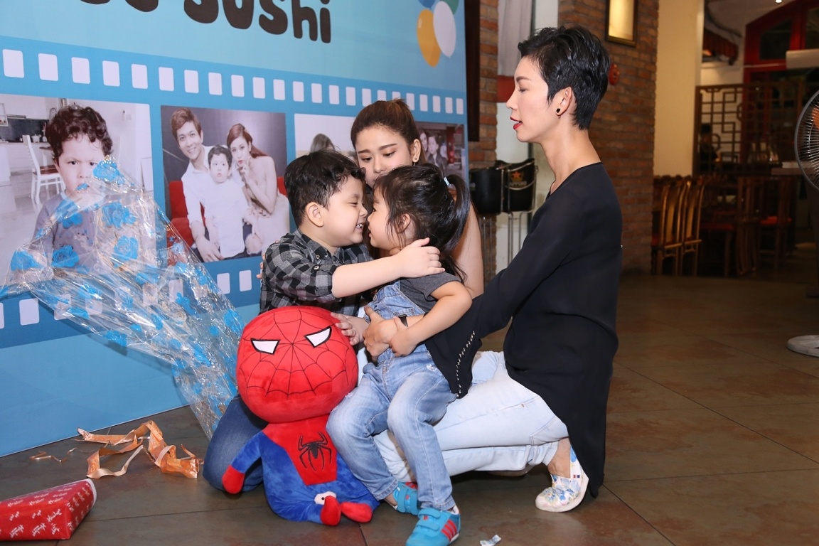 | Xuân Lan cũng đưa con gái - bé Thỏ đến chúc mừng Sushi. |
