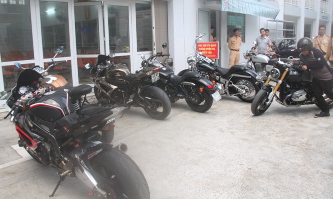 Dàn môtô khủng đang bị tạm giữ tại công an Đà Nẵng chiều 17/1. |
