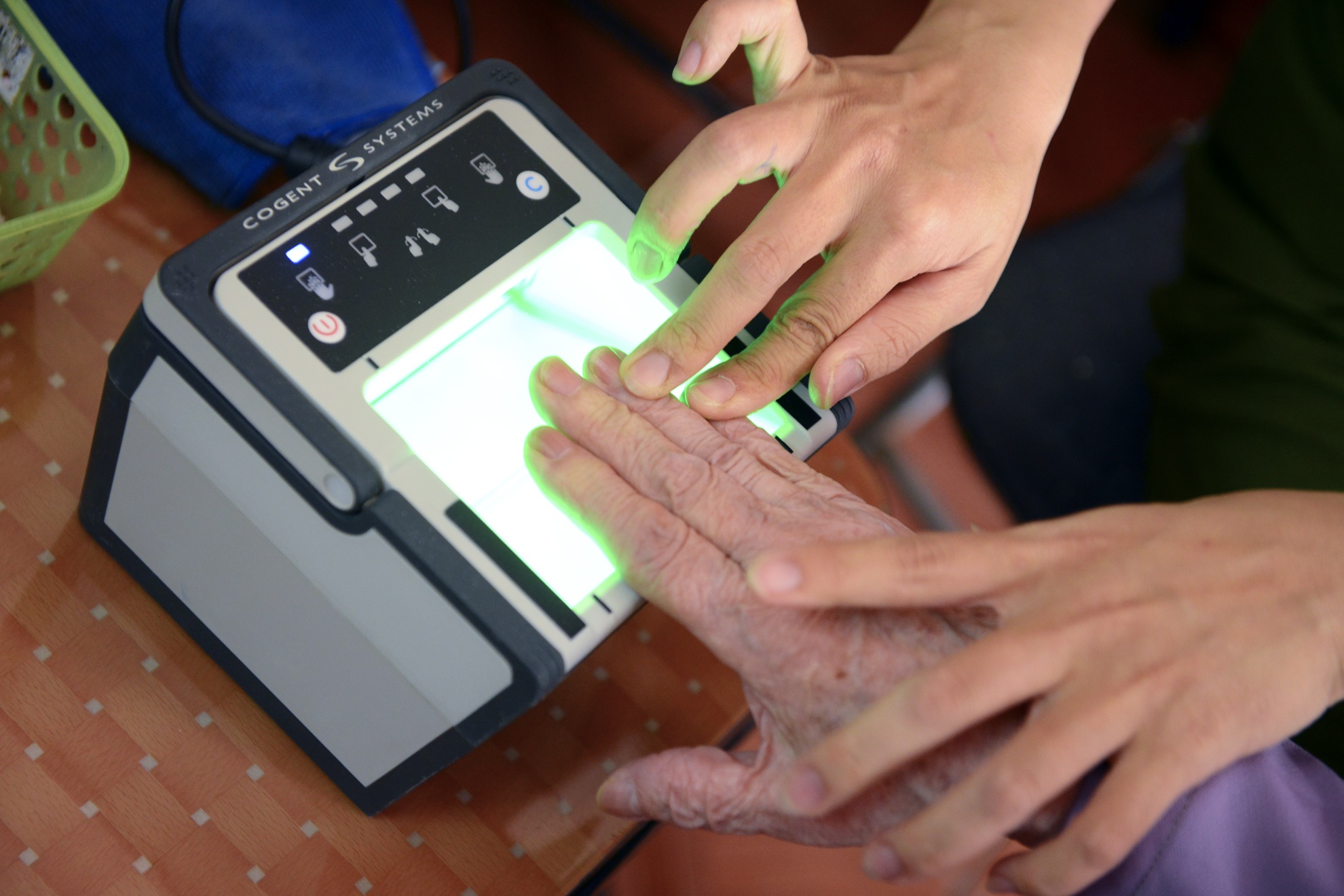 Máy quét điện tử giúp công an lấy dấu vân tay nhanh gọn và thuận tiện thay vì lăn tay bằng mực như trước đây.