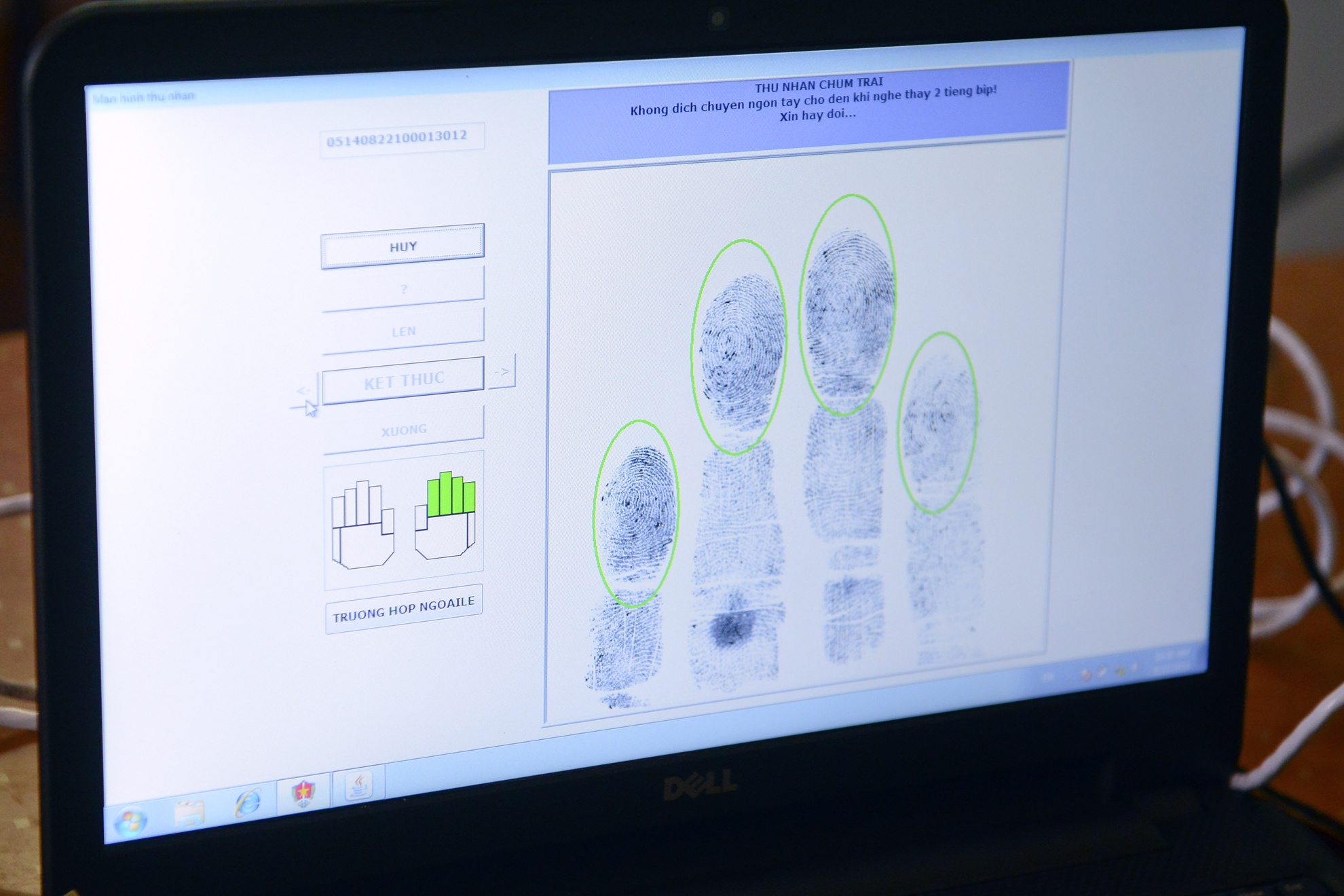 | Vân tay của công dân sẽ được lưu trong hồ sơ điện tử của công an quận. |