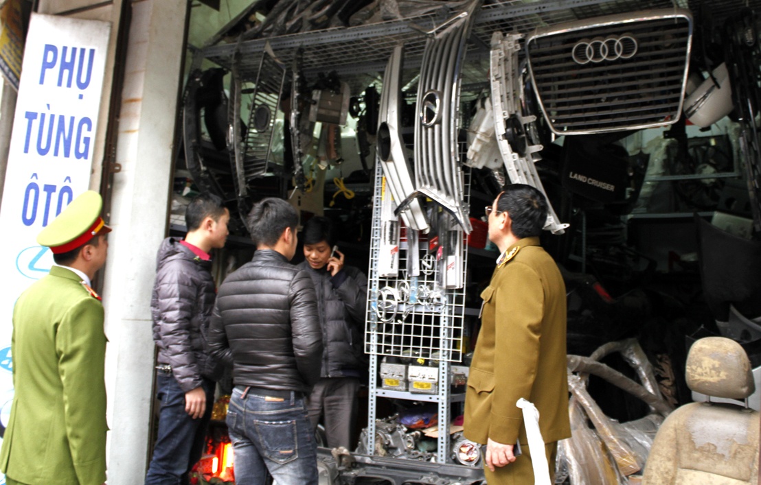 | Lực lượng chức năng kiểm tra cửa hàng bán phụ tùng ô tô