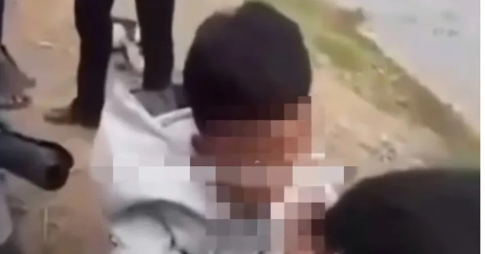 Hình ảnh nam sinh H. ở An Giang bị nhóm bạn hành hung và nhét băng vệ sinh vào miệng. Ảnh cắt từ clip. |