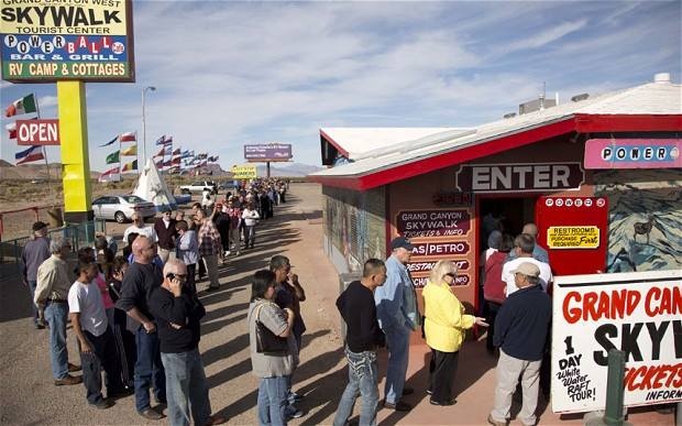 Người Mỹ xếp hàng mua vé số tại một cửa hàng ở bang Arizona. Ảnh: AP |