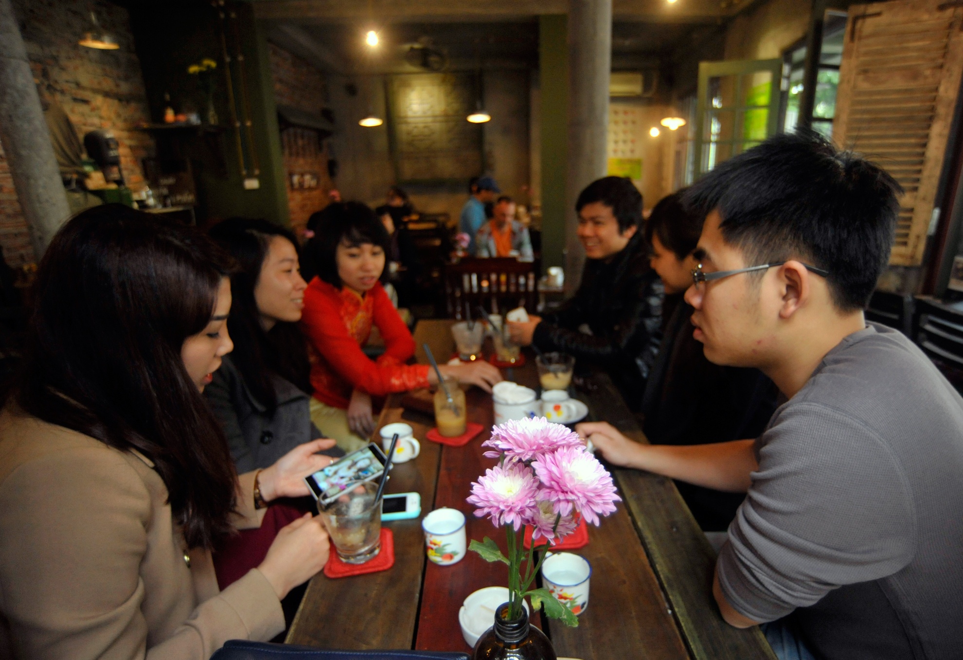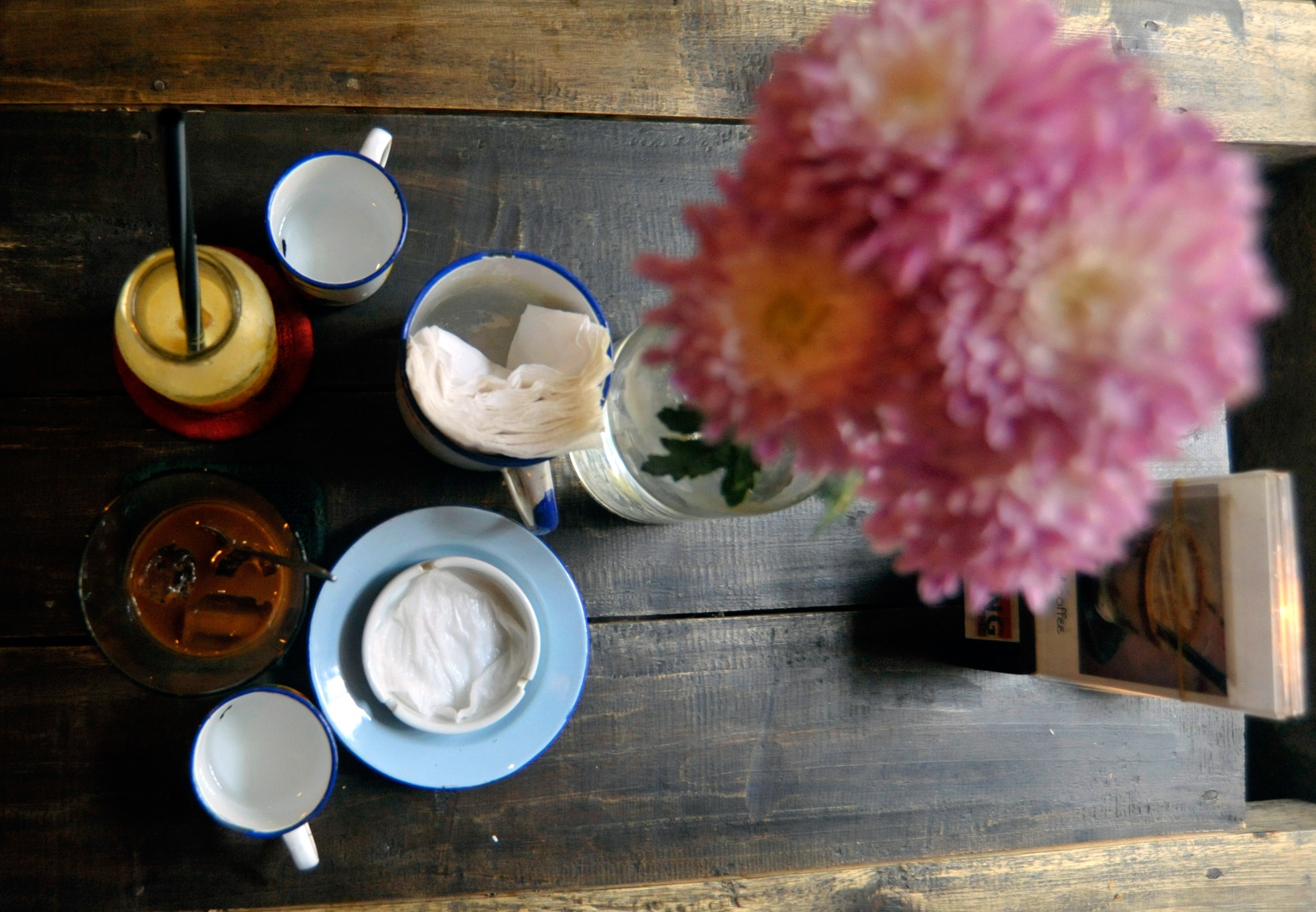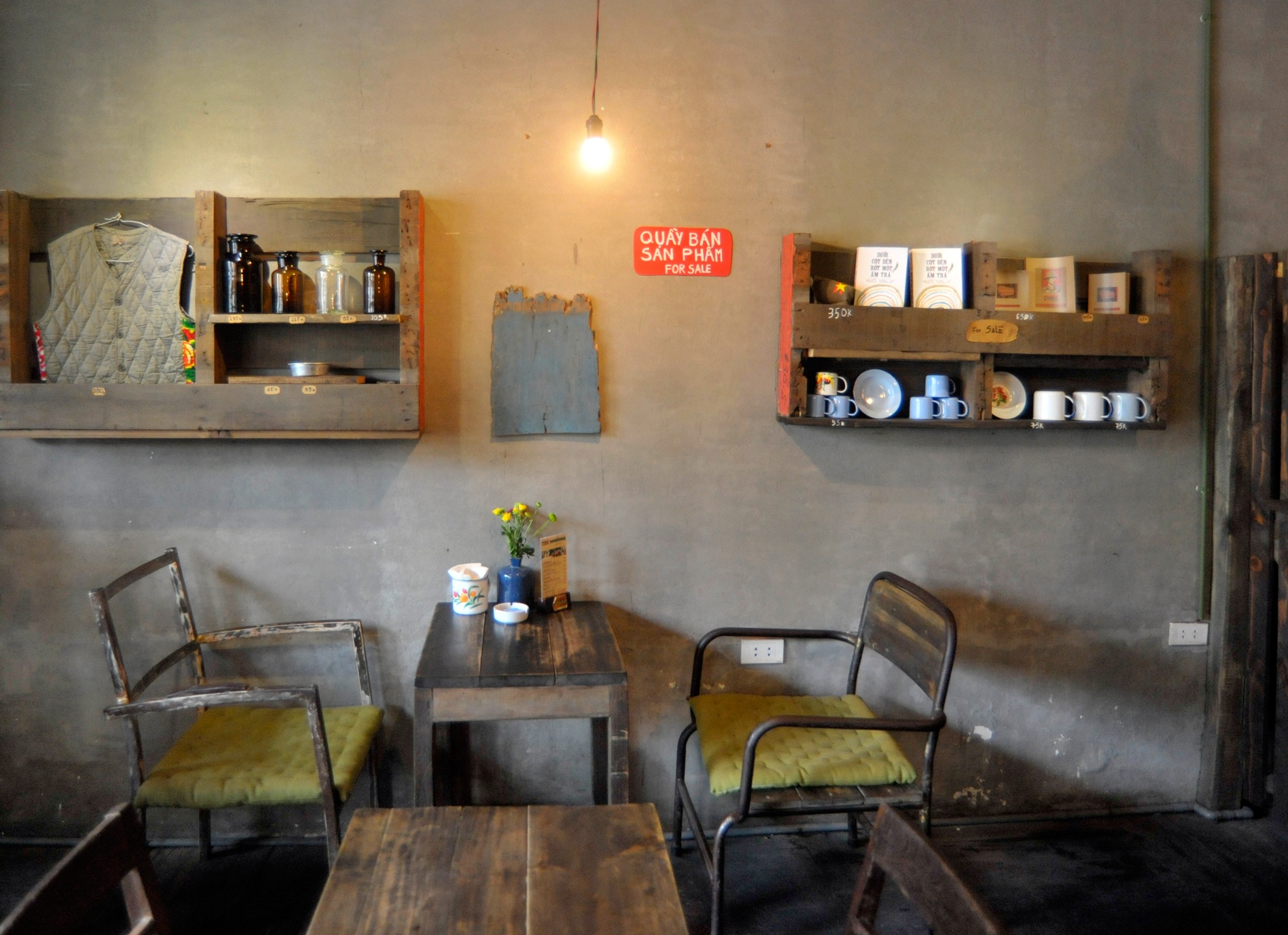 | Sự kết hợp yếu tố truyền thống, cũ kỹ là những vật dụng bằng men, bàn gỗ sơn xỉ với nét hiện đại là bình hoa được cho là điểm nhấn tinh tế của chuỗi quán. |