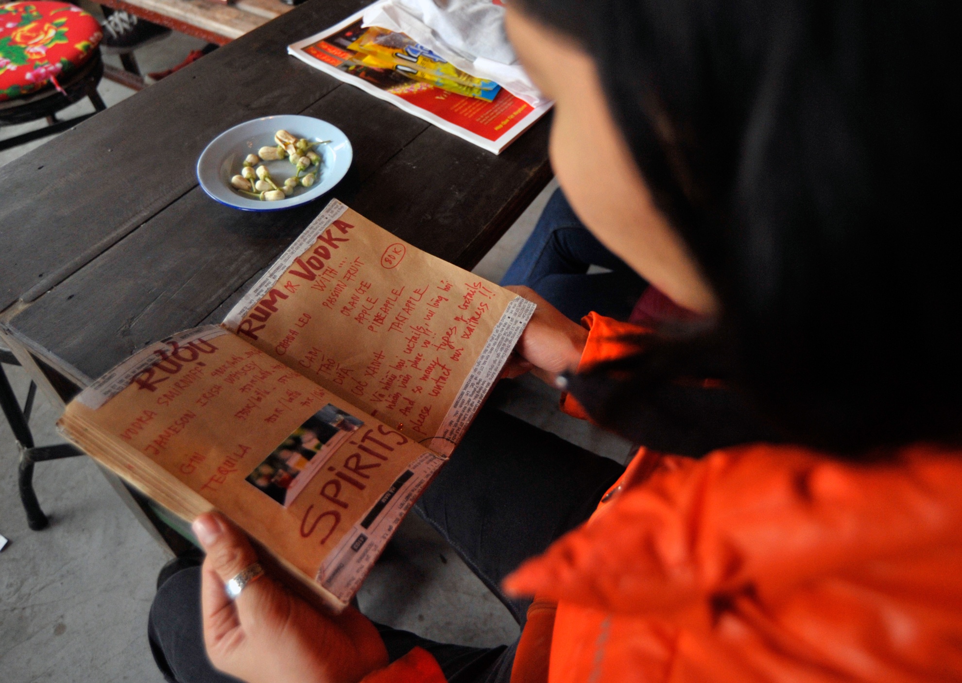Các món đồ ăn, thức uống được viết bằng tay, dán kèm ảnh minh họa. Chính nét chữ không thẳng thớm lại khiến cho khách hàng thích thú vì gợi sự giản dị, thân thuộc.