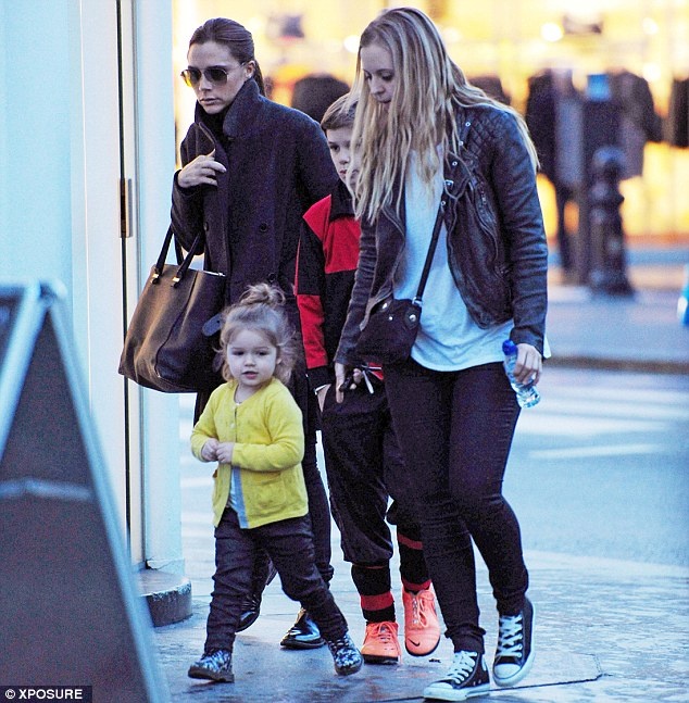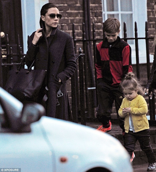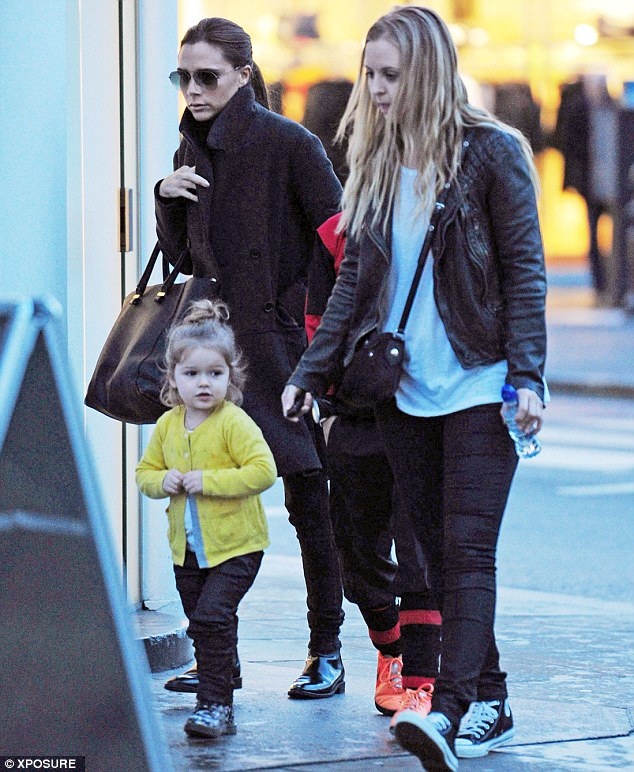 | Vic dẫn hai thiên thần là Romeo và Harper đi mua sắm tại khu phố phía Tây London. Cả gia đình nhà Beck vừa mới trở về từ New York cách đây chưa lâu. Bà mẹ bốn con diện phong cách đơn giản với gam màu đen làm chủ đạo trong khi cô nhóc sành điệu Harper nổi bật với chiếc áo cardigan màu vàng. |