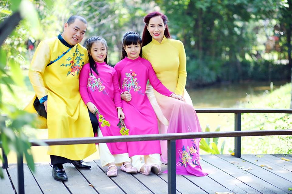 Không chỉ nổi tiếng với khả năng diễn xuất và tấu hài, Việt Hương còn khiến fan ngưỡng mộ với mái ấm hạnh phúc bên chồng, con gái xinh xắn và con trai nuôi đáng yêu. Gia đình nữ danh hài diện áo dài ton-sur-ton nằm trong BST thời trang áo dài truyền thống mang tên Tết an gia của NTK Thuận Việt để đón xuân về.