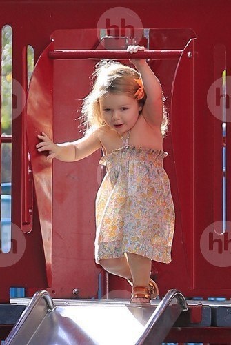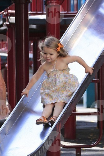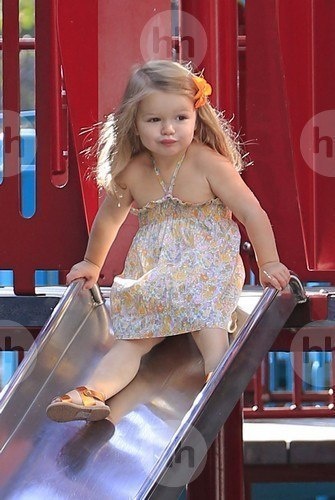 | Cô bé út nhà Becks thích thú khi chơi cầu trượt. |