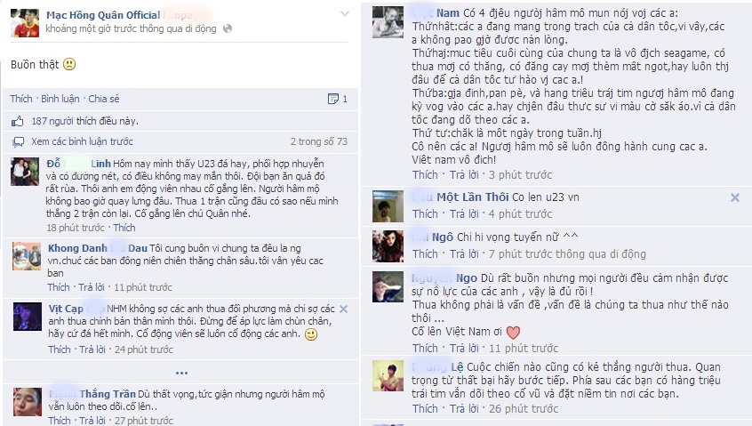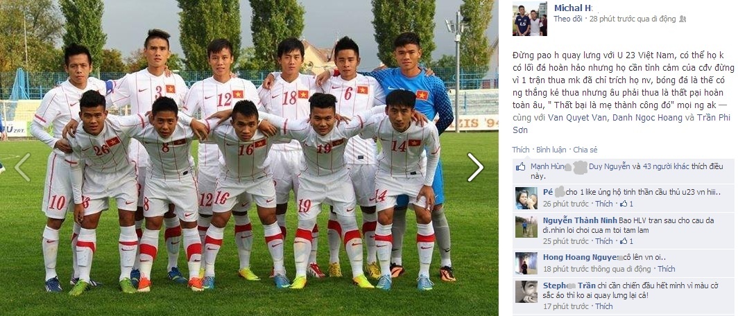 | Chia sẻ của tiền đạo Việt kiều Mạc Hồng Quân trên trang mạng xã hội. |