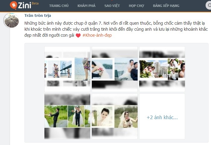 Chỉ cần vào chủ đề (hashtag) #khoe-ảnh-đẹp, người dùng có thể thấy được tổng hợp các bài dự thi mà chủ yếu là hình cưới với những lời chia sẻ tràn ngập niềm vui, hạnh phúc của những cặp vợ chồng mới cưới, hoặc những hình ảnh đời thường, giản dị nhưng gắn đầy kỷ niệm của những bạn trẻ.