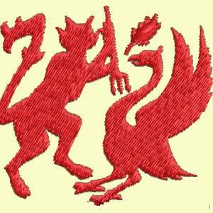 Một fan M.U thêu bức tranh có hình Quỷ đỏ dùng mũi đinh ba hạ gục con hạc, biểu tượng của Liverpool.