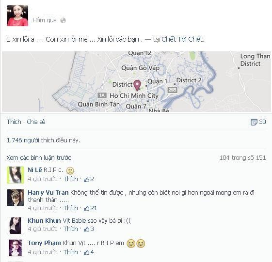 | Trước khi tự tử, cô gái còn lên mạng xã hội để chào từ biệt và xin lỗi mọi người. |