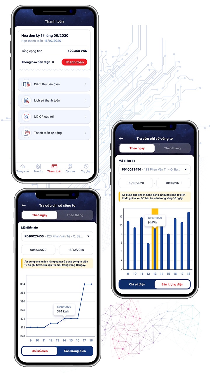 Các công tơ hiện đại sẽ truyền dữ liệu tức tời về trung tâm điều hành. Thông qua dữ liệu này, EVN Hà Nội cung cấp cho khách hàng bằng app EVNHANOI. Khách hàng chỉ cần mở app là có thể theo dõi mức sử dụng một cách nhanh chóng và thuận tiện.