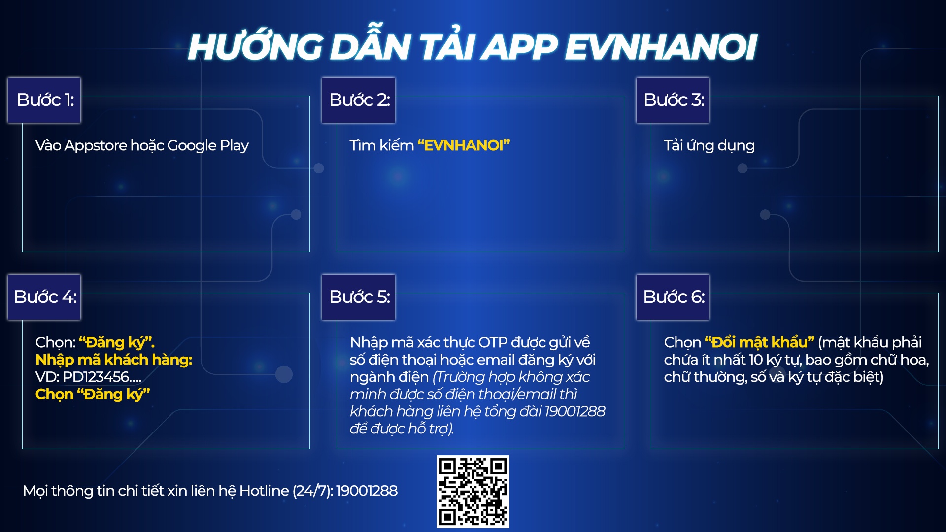 Tổng công ty cũng có hệ thống chăm sóc khách hàng một cách toàn diện, chạy song song với ứng dụng trên. Khách hàng có thắc mắc trong quá trình sử dụng app EVNHANOI có thể liên hệ tổng đài 19001288 (phục vụ 24/7) để được hỗ trợ, tư vấn và giải đáp.