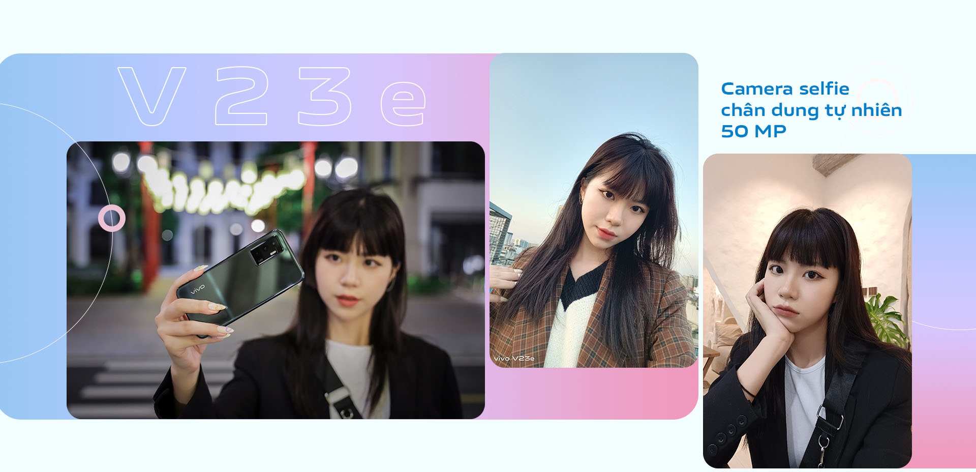 Với loạt tính năng và hiệu năng ấn tượng so với những dòng điện thoại cùng phân khúc, vivo V23e khuyến khích người dùng smartphone hiện đại vượt qua giới hạn của bản thân để khẳng định mình với thế giới. Với thông điệp "Selfie tự nhiên - Tự tin nét riêng", người trẻ có thể thoái mái thể hiện vẻ đẹp và cá tính nguyên bản trên hành trình kết nối với cộng đồng.