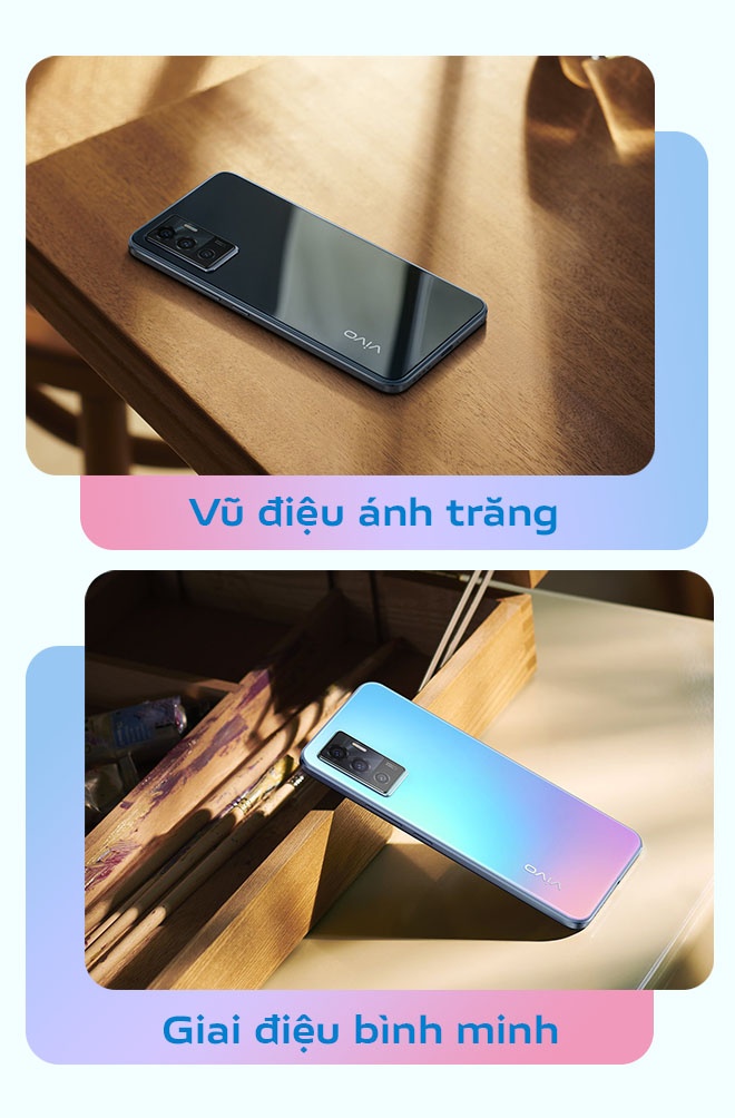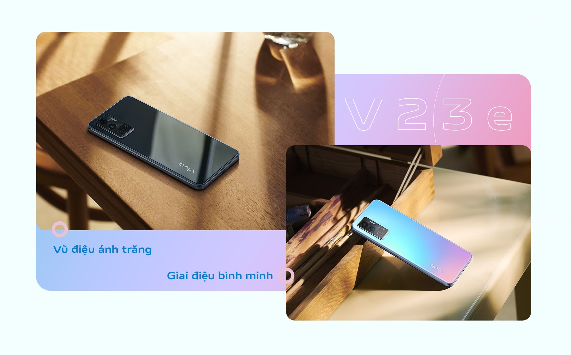 Góp phần giúp Gen Z thể hiện cá tính, vivo V23e tiếp tục mang thiết kế mỏng nhẹ, phong cách như model tiền nhiệm với độ dày 7,36 mm (vũ điệu ánh trăng) và 7,41 mm (giai điệu bình minh) cùng trọng lượng 172 g. Mặt lưng kính mờ cùng khung viền vuông vức tạo cảm giác cứng cáp, năng động, phù hợp biến máy thành phụ kiện thời trang sành điệu cho giới trẻ. Hai phiên bản vũ điệu ánh trăng và giai điệu bình minh tượng trưng cho những nét tính cách tương phản, giúp người trẻ nổi bật và tạo sức hút trước đám đông.