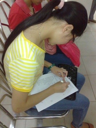 | Một "khách hàng" đang điền các thông tin cá nhân vào một mẫu GKSK được "bán" không cần qua khám. |