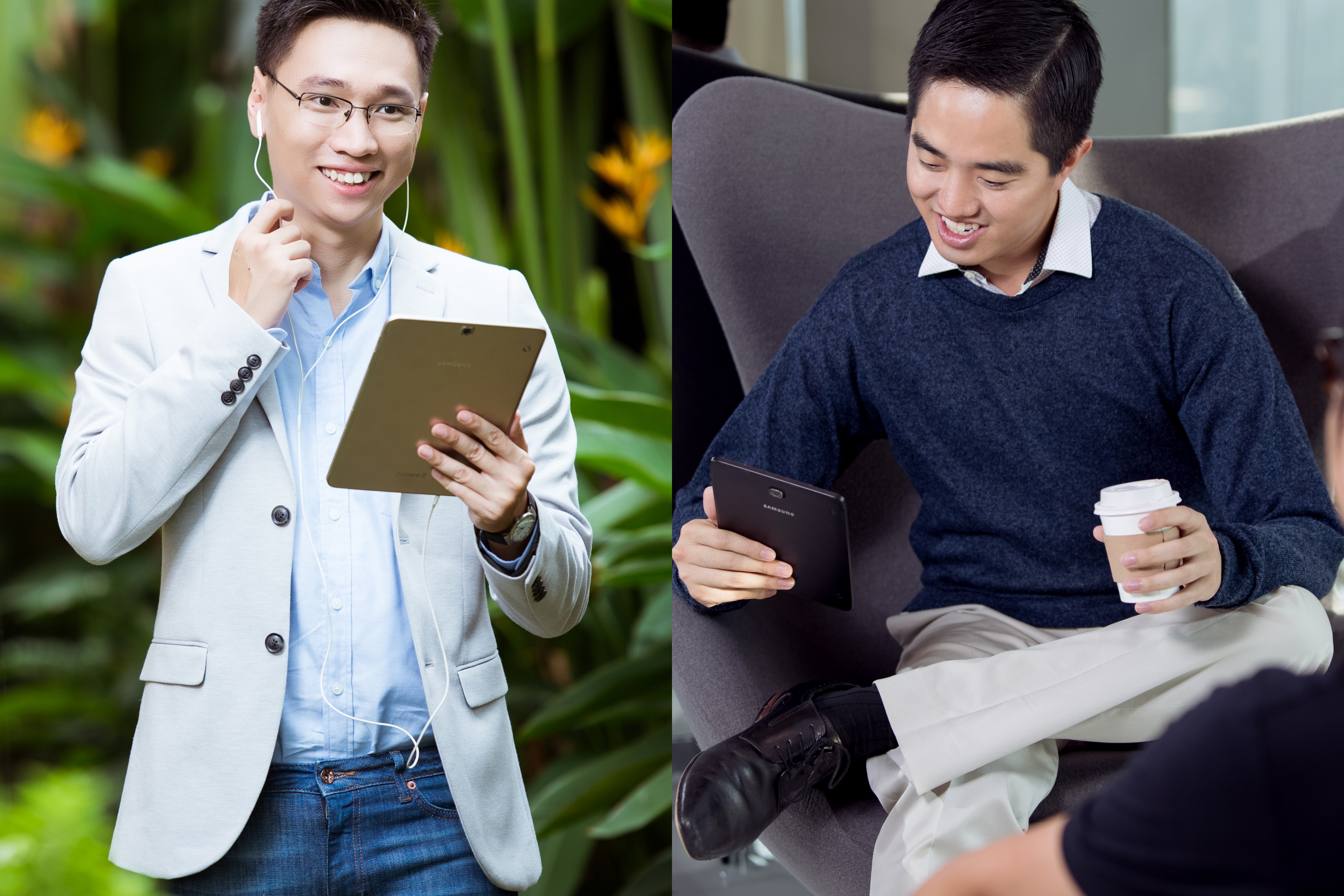 Cùng quan điểm với Phương Linh, nhà thiết kế trẻ Tạ Quốc Kỳ Nam chia sẻ: “Sở hữu thiết kế khung kim loại sang trọng nhưng chỉ nhẹ như một tách cà phê mang đi, Galaxy Tab S2 là sự lựa chọn hoàn hảo cho những người trẻ theo đuổi phong cách tối giản và hay xê dịch như Nam”.