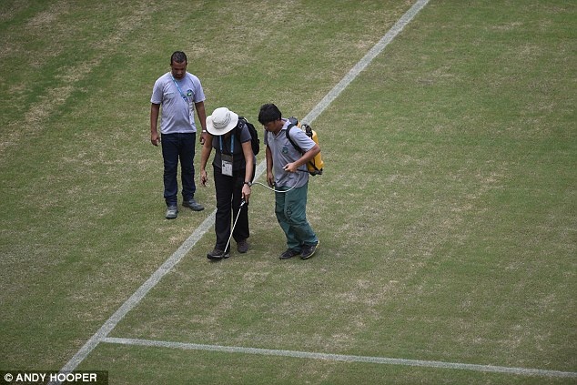 Nhưng thay vì có những cải tạo tích cực, nhân viên sân Arena da Amazonia lại tìm cách che đậy qua loa những chỗ cỏ xấu. Công nhân đang phun sơn xanh khắp sân, đặc biệt là những khoảng cỏ chết để đánh lừa mắt người hâm mộ.