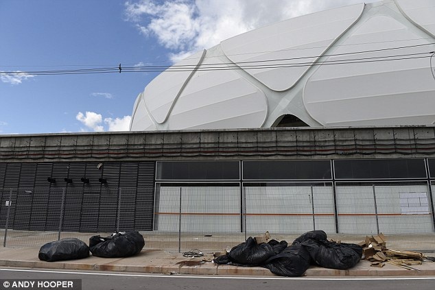 | Rác thải ngổn ngang quanh sân Arena de Amazonia. |
