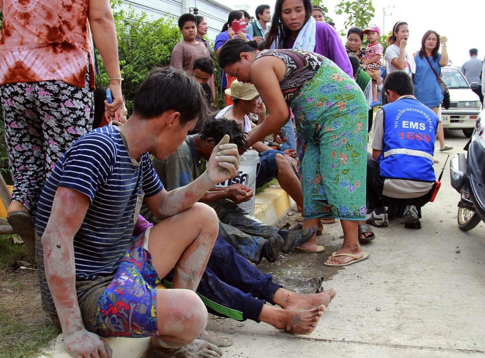 | Đội cứu hộ đưa công nhân bị thương ra khỏi hiện trường, thiếu tá Smithi Mookdasanit cho biết. |