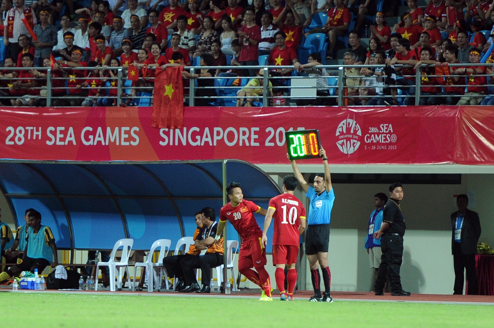 | Công Phượng xứng đáng sắm vai đầu tàu của U23 Việt Nam trong cuộc so tài với U23 Malaysia. Phút 14, tiền đạo của HAGL buộc hậu vệ đối phương phạm lỗi trong vòng cấm, đem lại quả penalty cho đội nhà. Trên chấm 11 m, Mạc Hồng Quân tận dụng rất tốt cơ hội để mở tỷ số cho U23 Việt Nam. |