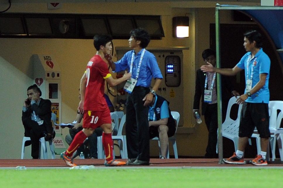 | Phút 67, HLV Miura cho Công Phượng ra nghỉ và tung Phi Sơn vào sân. Mục đích của nhà cầm quân người Nhật Bản là bảo vệ đôi chân tiền đạo HAGL cho những trận quan trọng tiếp theo. |