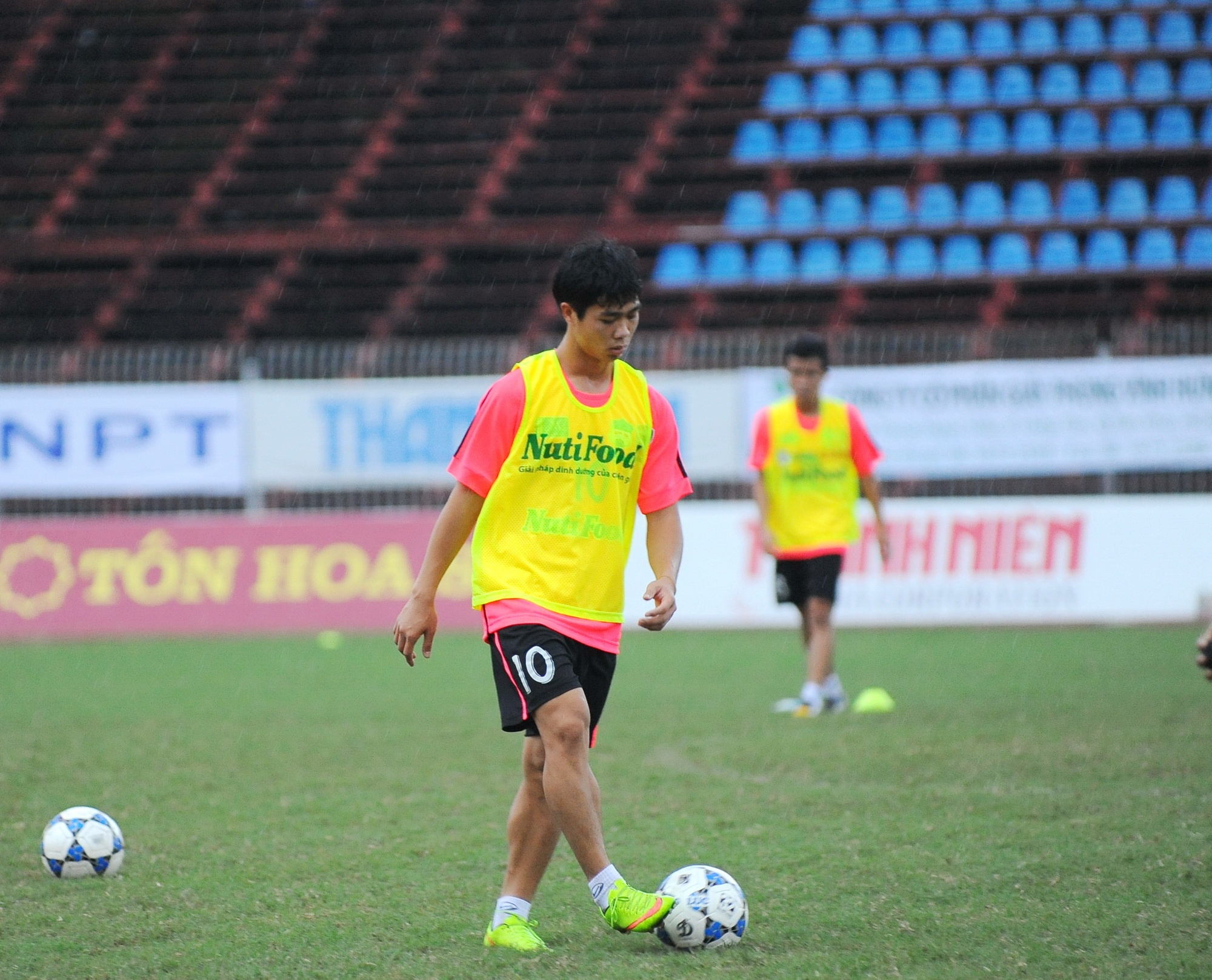 | Trong buổi tập chiều nay, Công Phượng đã mạnh dạn đi bóng và dứt điểm nhiều hơn để giải quyết tình huống thay cho phương án chuyền ngang vào cho đồng đội mà ở VCK U19 châu Á người hâm mộ thường thấy ở tiền đạo mang áo số 10. |