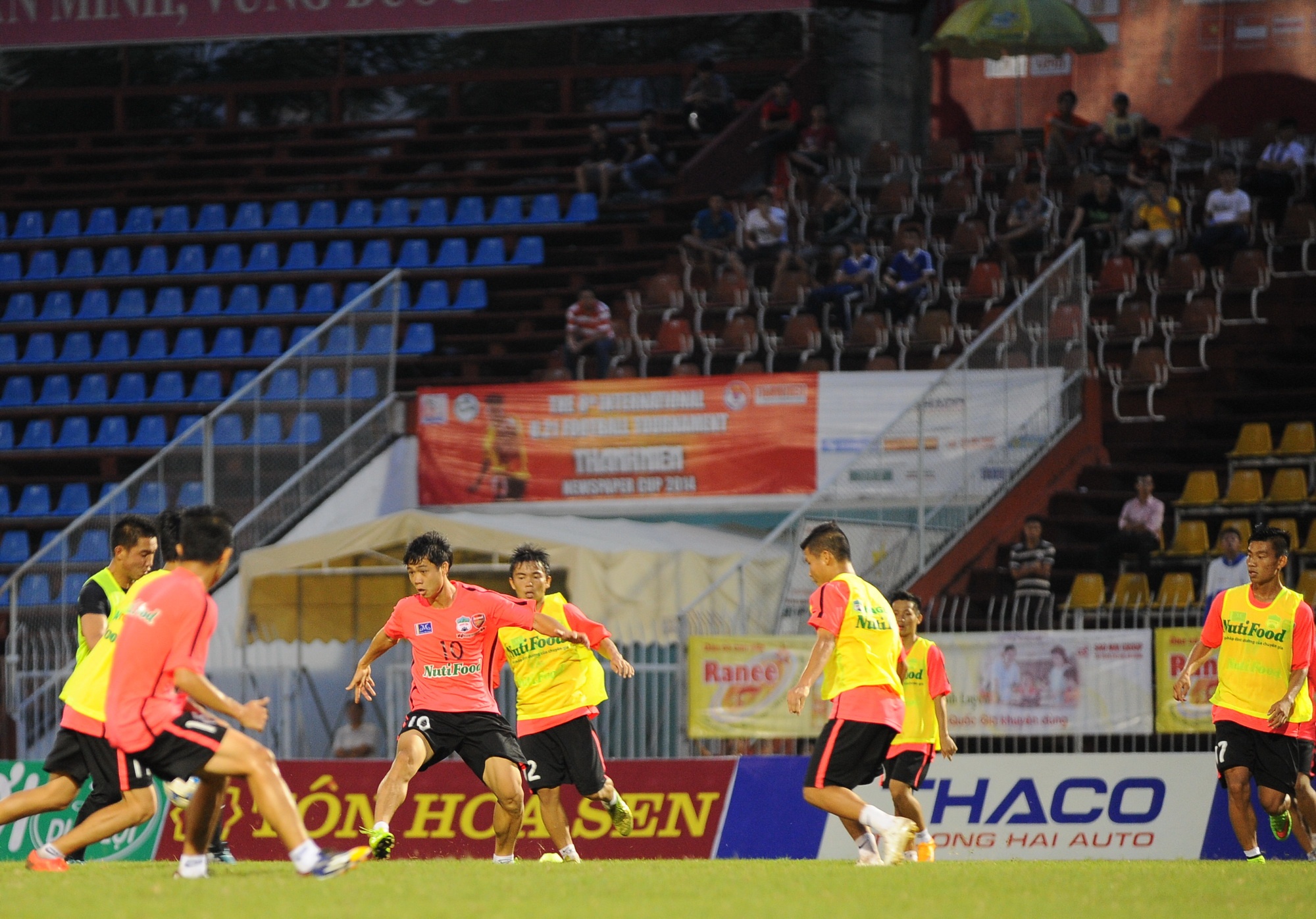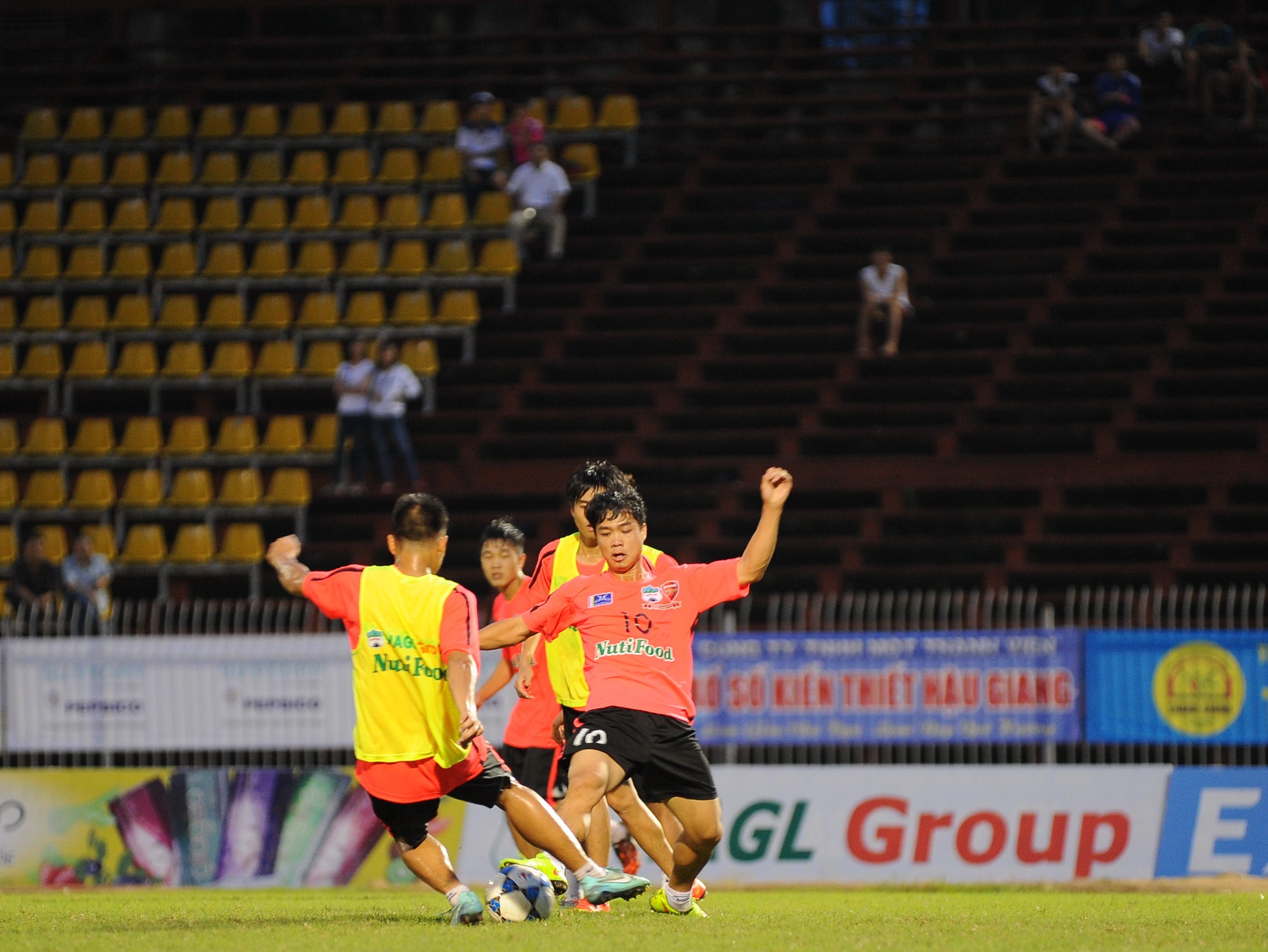 | Sau các bài tập cá nhân, HLV Graechen chia đôi đội hình đá đối kháng dưới sự theo dõi của khán giả Cần Thơ. Theo đó đội hình chính của U19 HAGL trong trận đấu với U21 Malaysia ngày mai cũng dần lộ diện. |