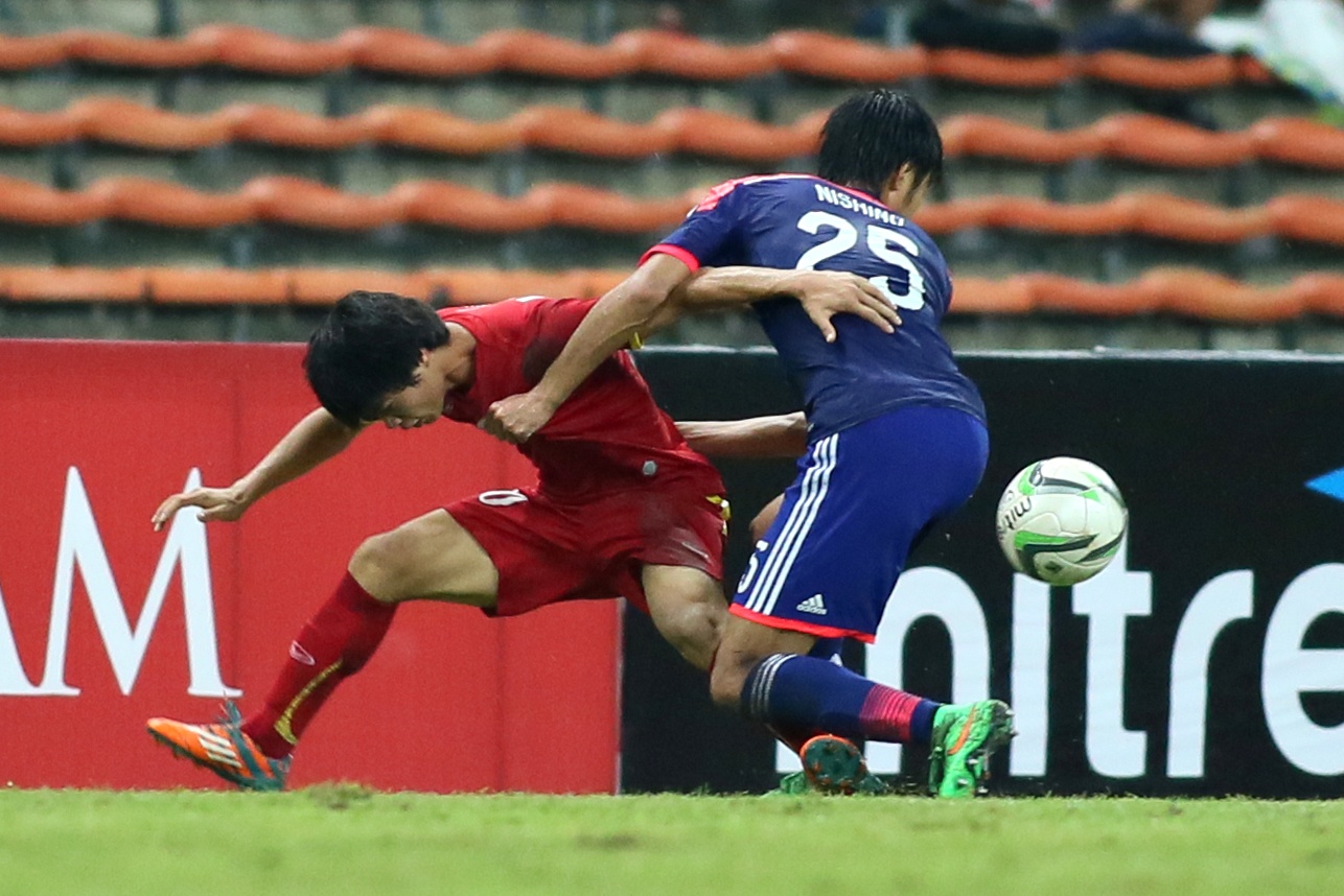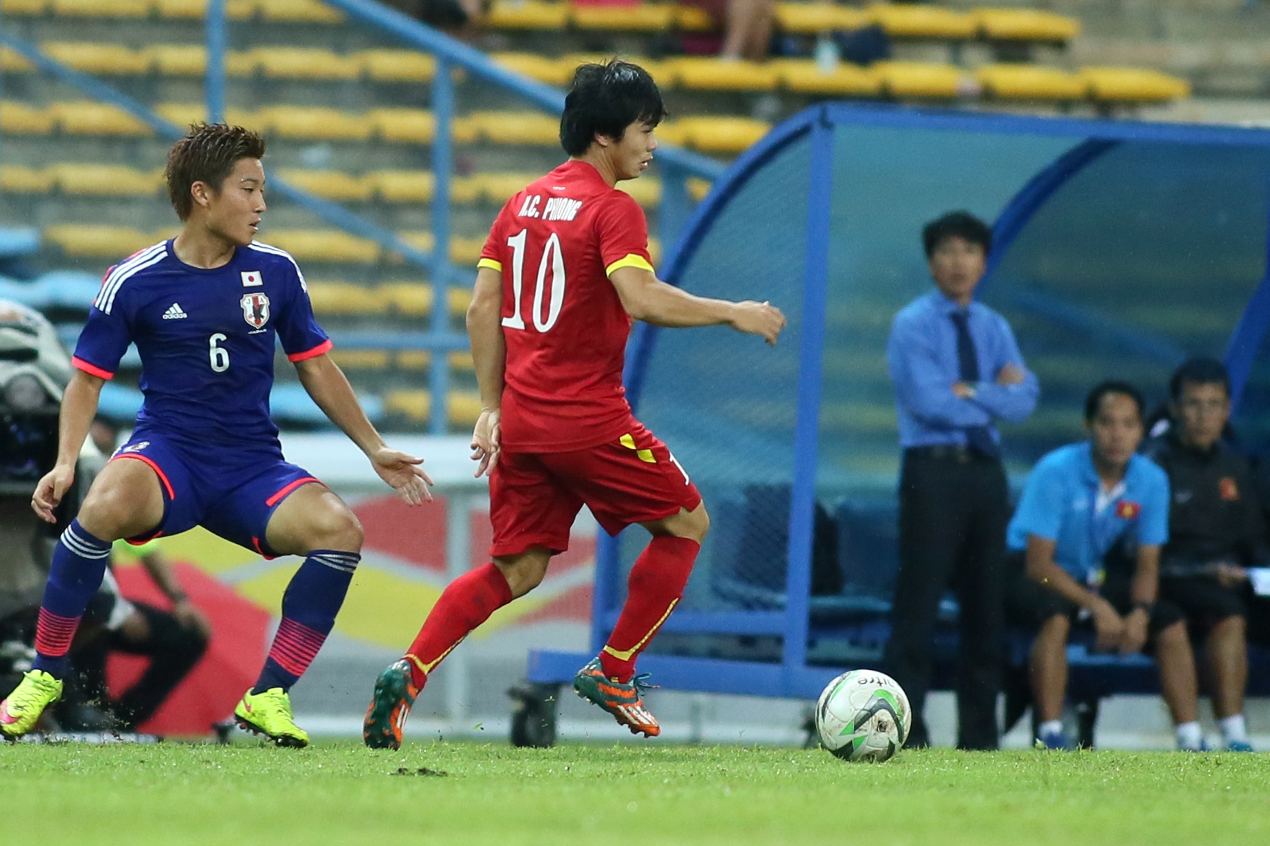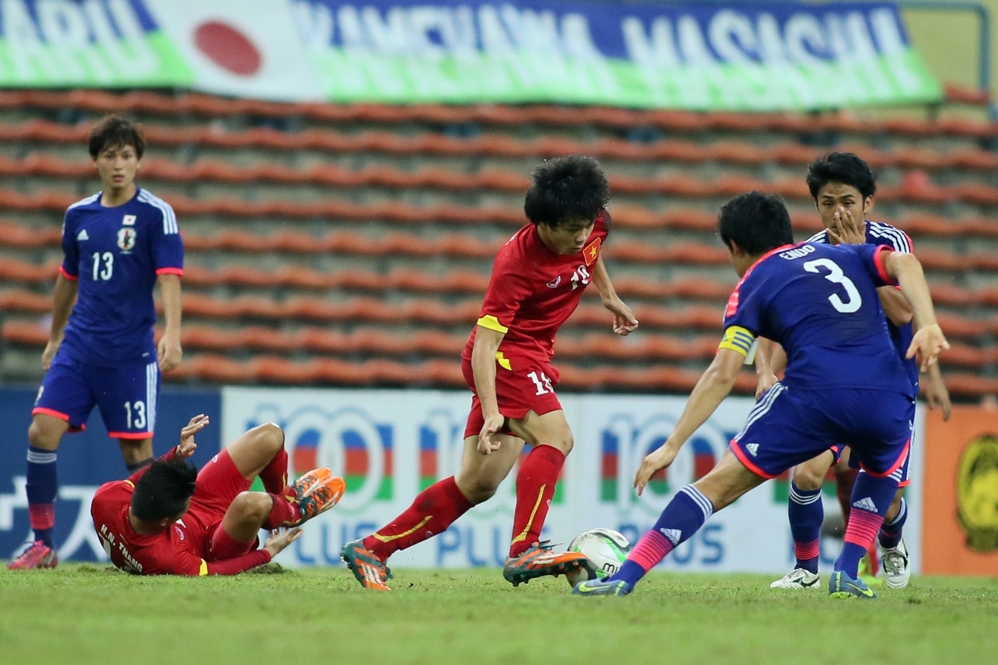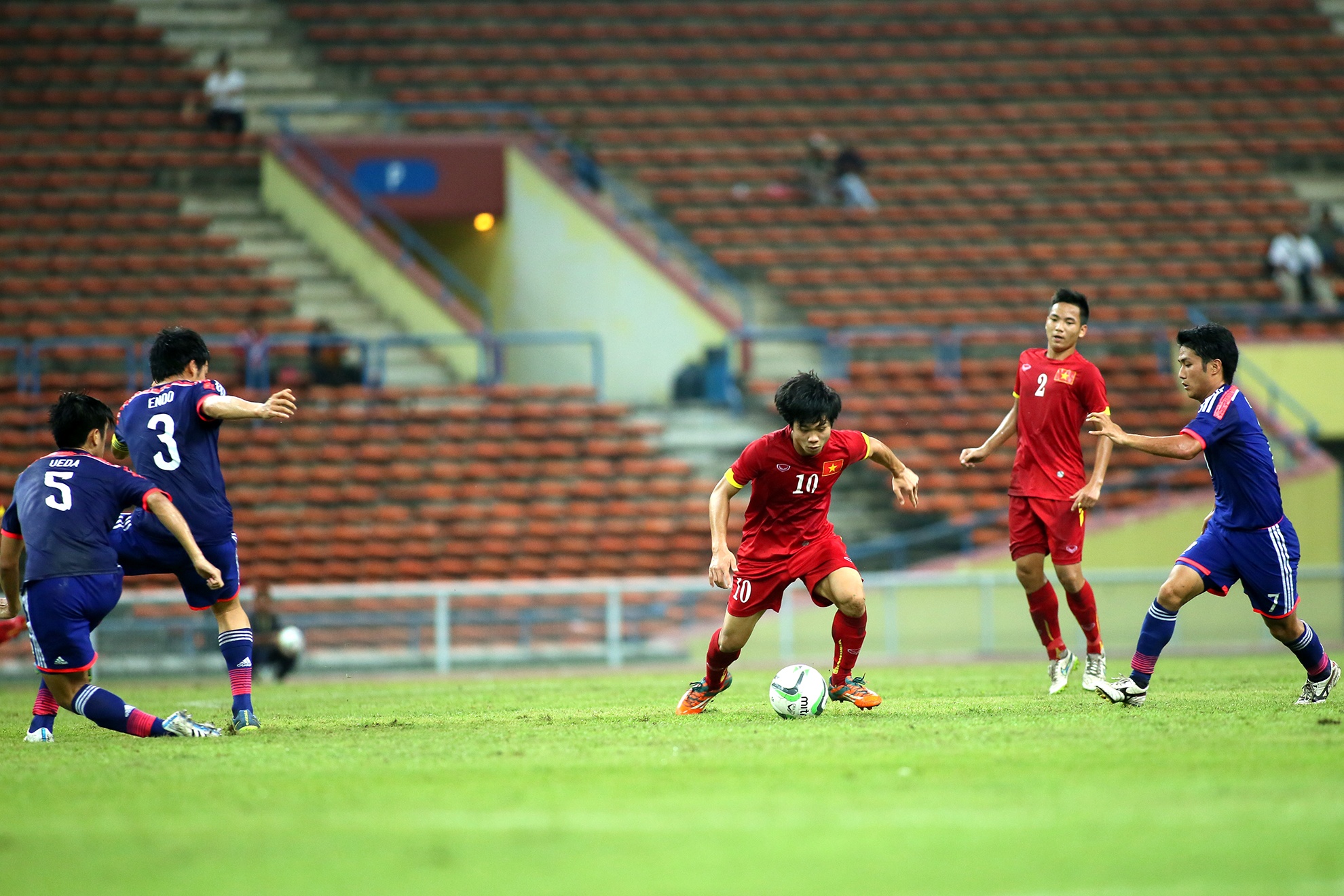 | Với lối chơi kỹ thuật cùng những pha đi bóng tốc độ, cầu thủ đến từ HAGL liên tục gây khó dễ cho hàng thủ của Nhật Bản. Khi anh có bóng luôn có ít nhất 2 đến 3 cầu thủ đối phương vây quanh. |