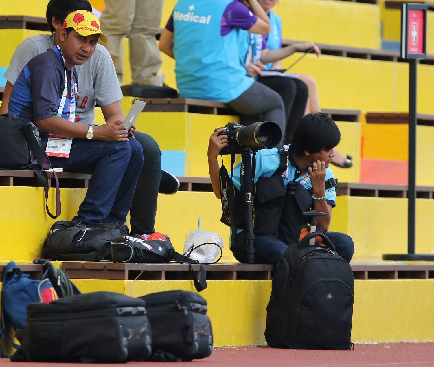 | Hàng chục phóng viên Thái Lan cũng tới sớm để quan sát thầy trò HLV Miura tập luyện. |
