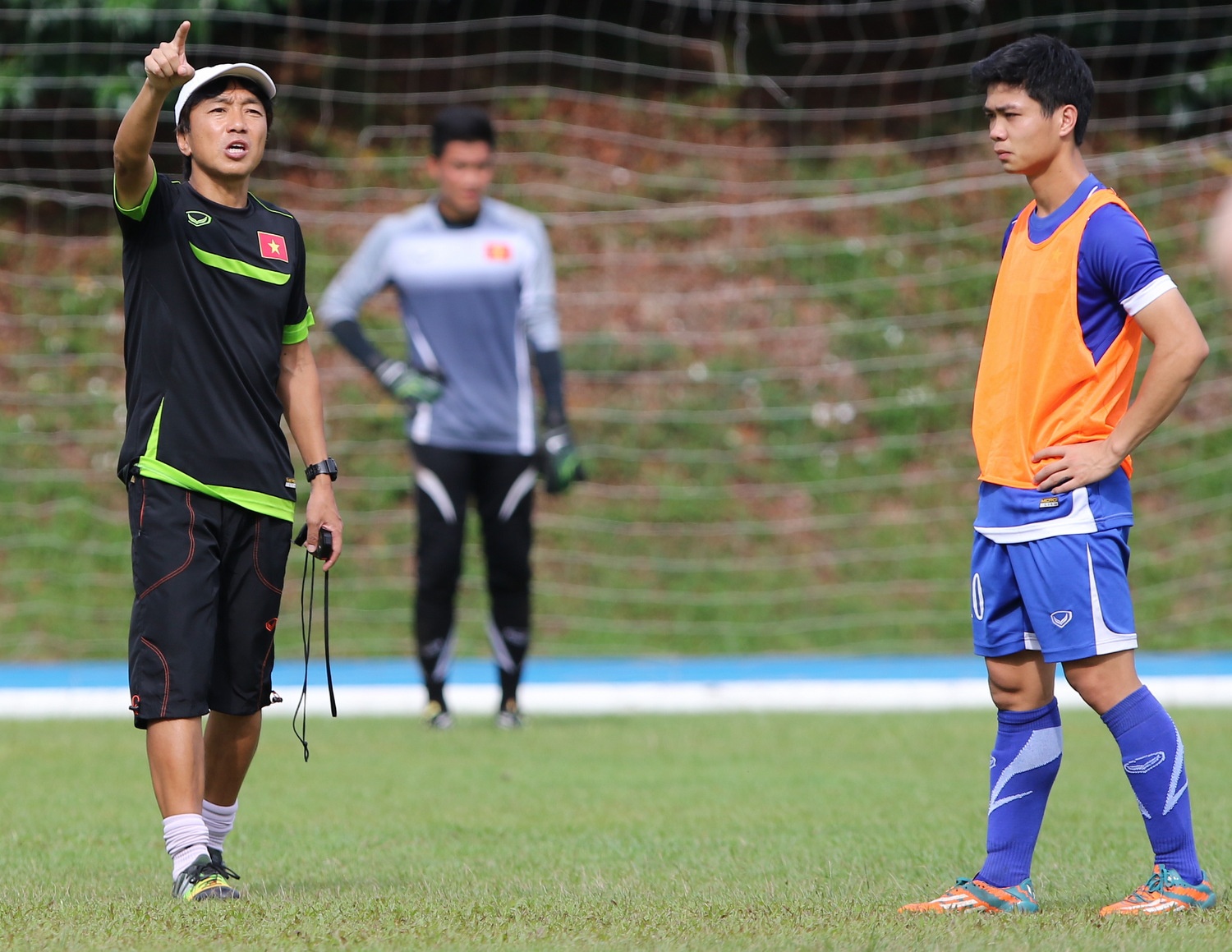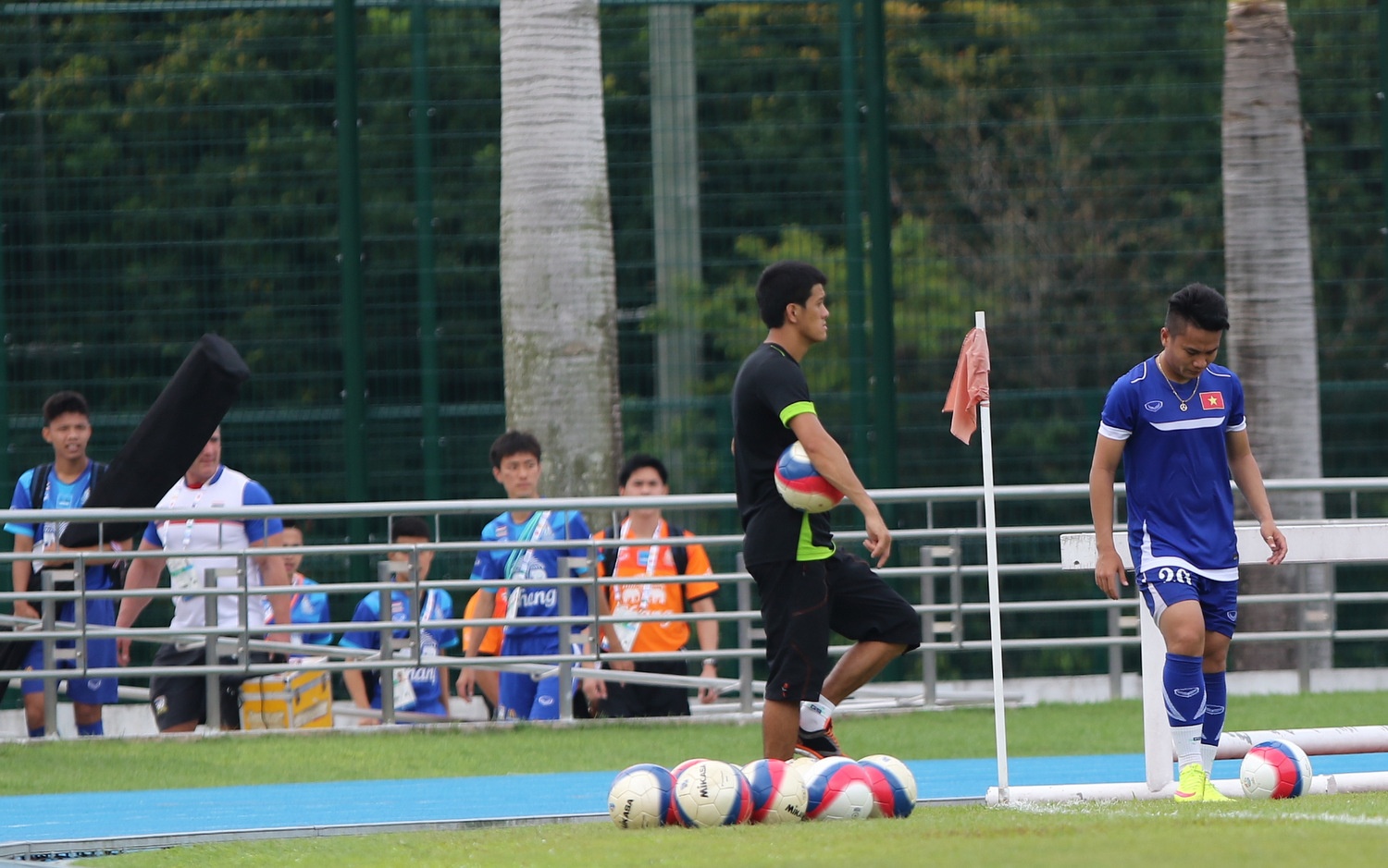 | Sau khi vui đùa với bóng, các cầu thủ bước vào thời gian đá đối kháng, rèn chiến thuật. HLV Miura vẫn trung thành với lối chơi của mình. Nhà cầm quân người Nhật Bản chỉ đạo các học trò phòng ngự từ xa để làm nản lòng các chân sút đối phương. |