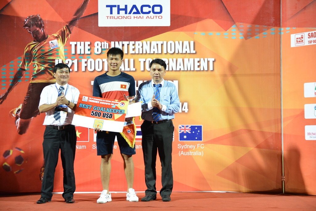 | Nguyễn Văn Công của U21 Việt Nam nhận giải thủ môn xuất sắc nhất. |