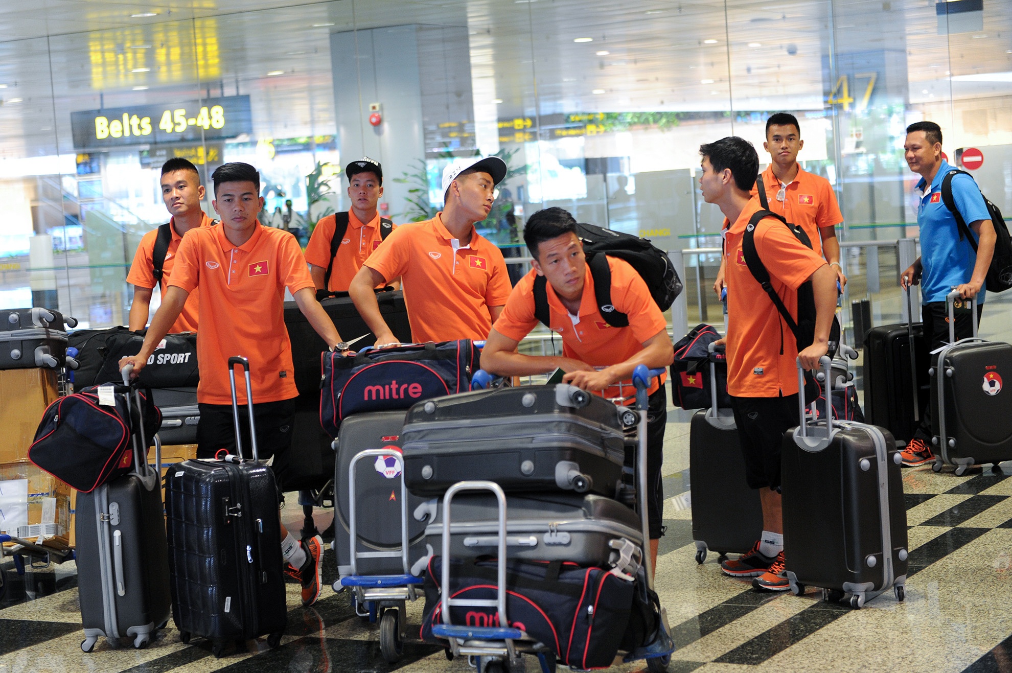 | Máy bay chở đội U23 Việt Nam hạ cánh tại sân bay Changi lúc 10h40 (giờ Việt Nam). |
